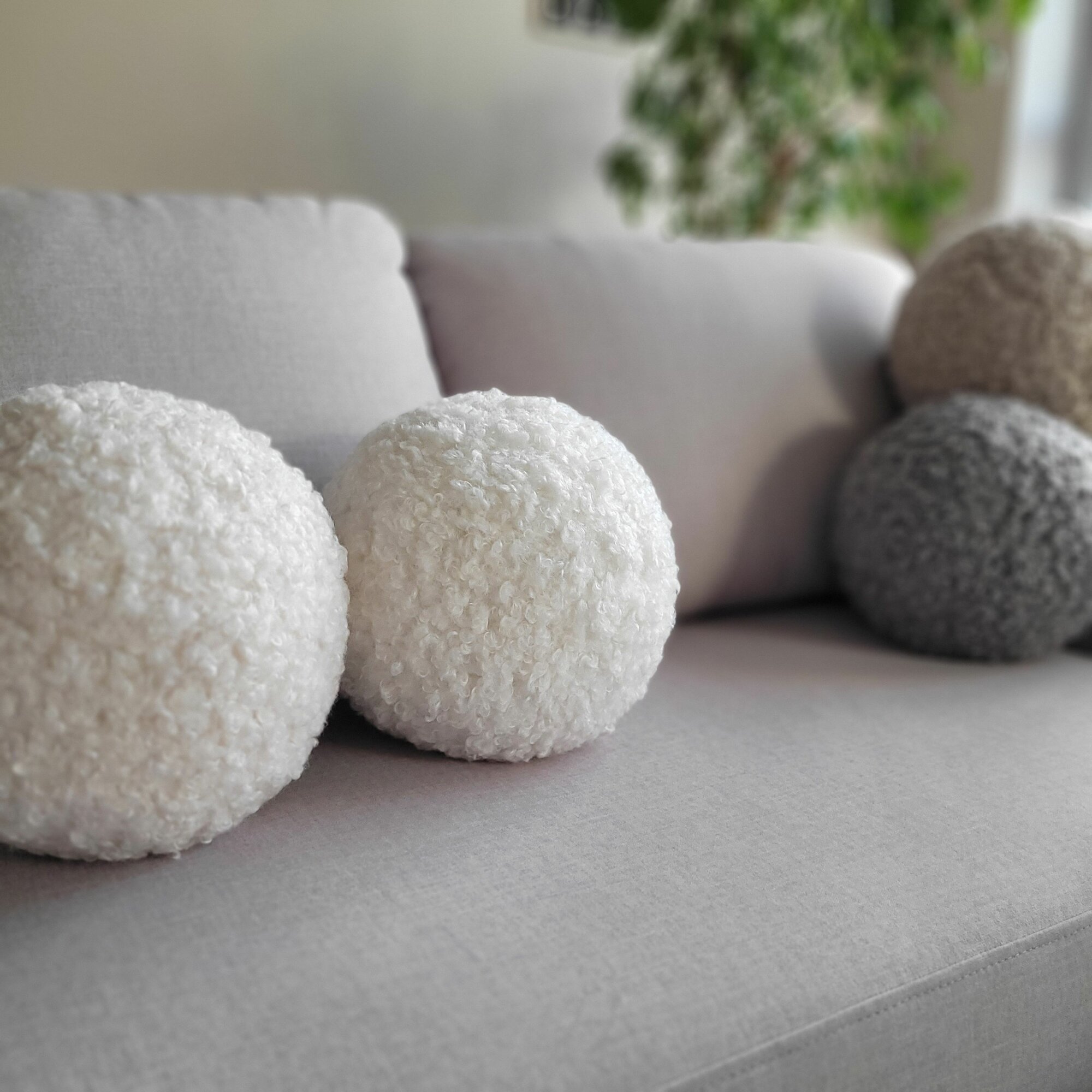 Подушка-шар "букле" 25x25см (серый, удл. ворс)