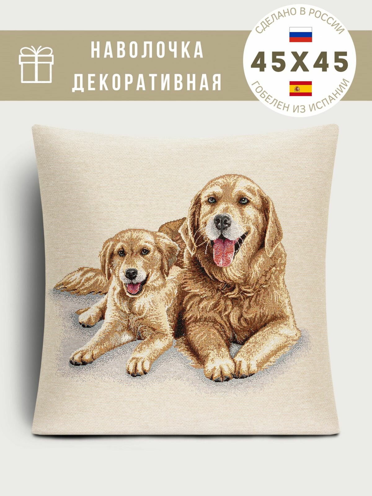 Наволочка с собакой Le Gobelin Ретривер золотистый 45х45 см