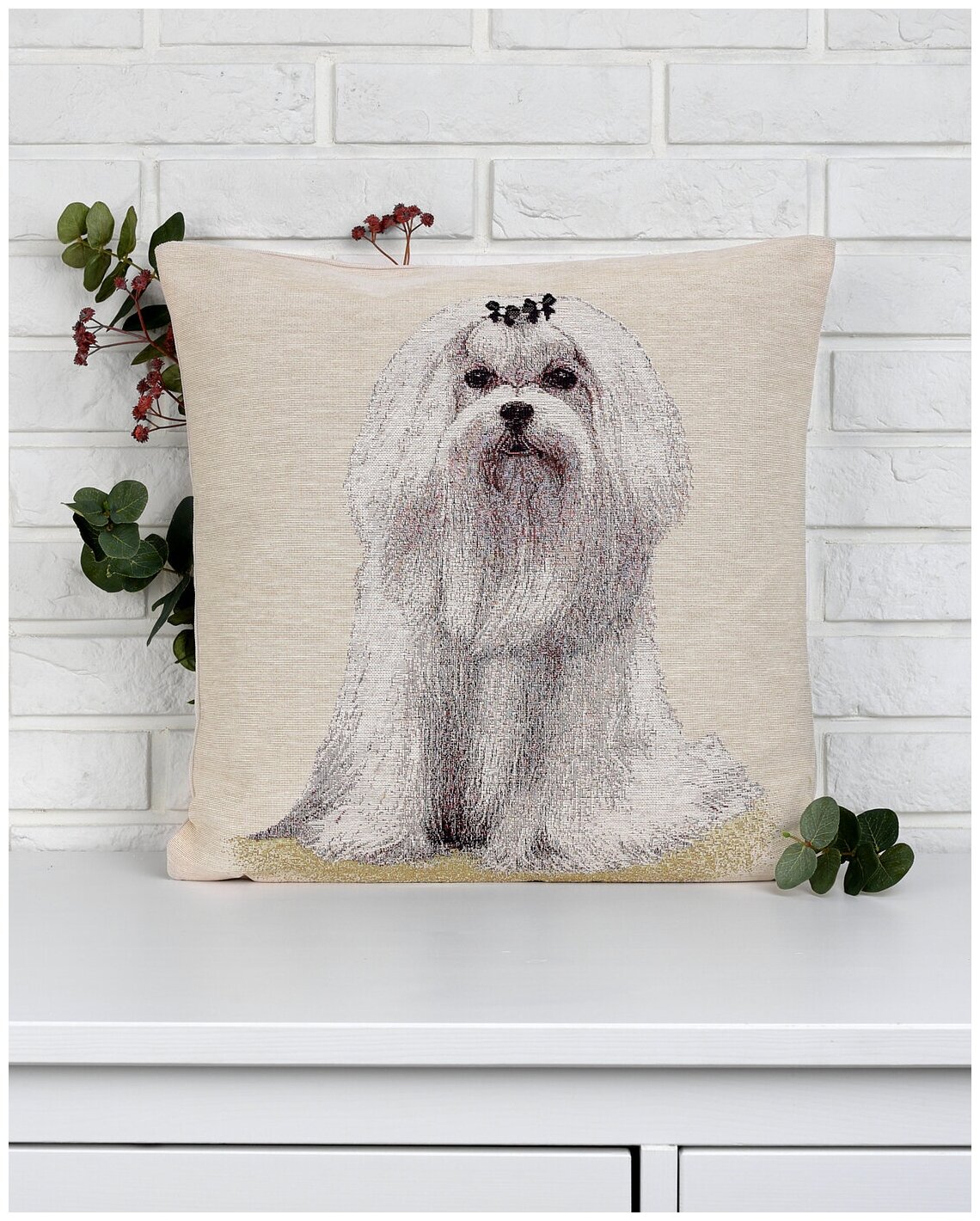 Наволочка с собакой Le Gobelin Мальтезе щенок 45х45 см