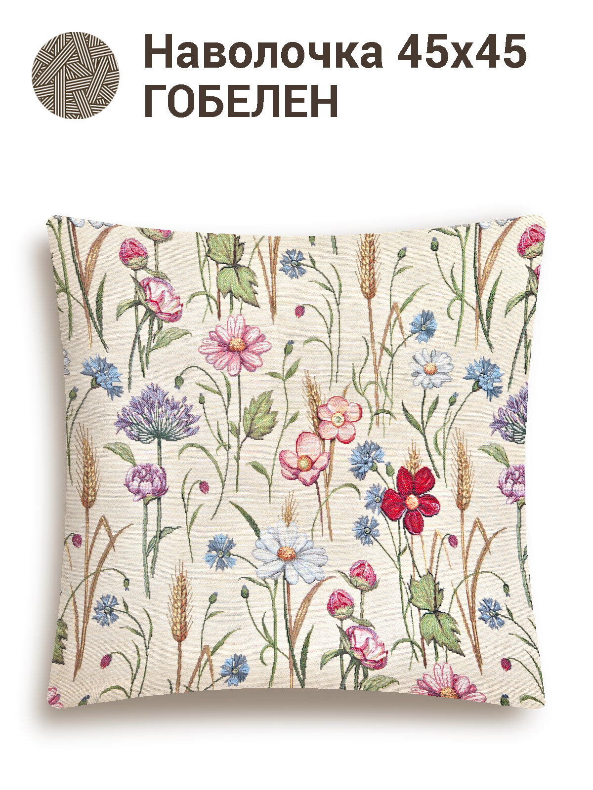 Наволочка из гобелена Le Gobelin Разнотравье Маки фон 45х45 см н/р
