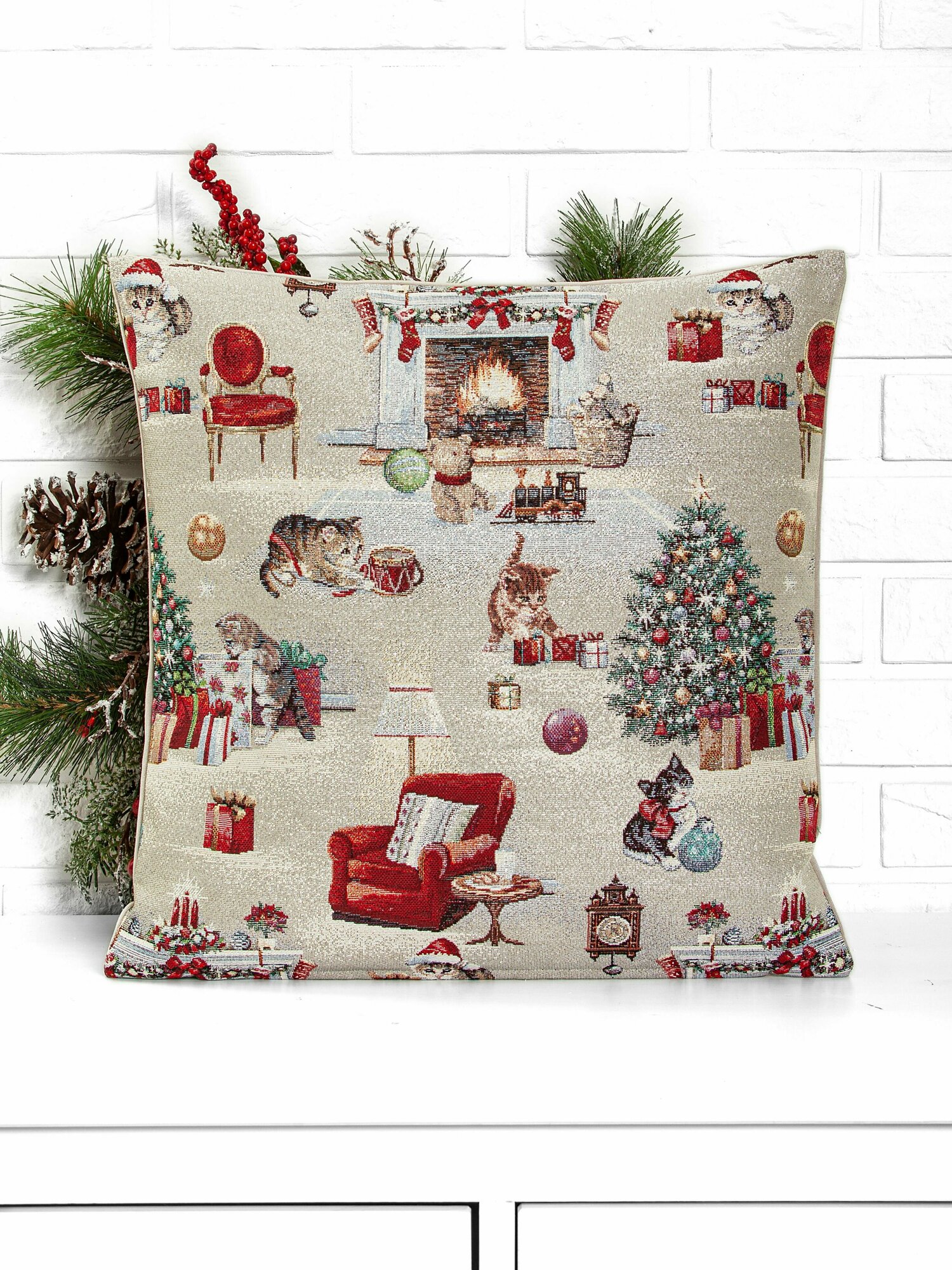 Купить Наволочка декоративная Le Gobelin Котята у камина 45х45 см односторонняя