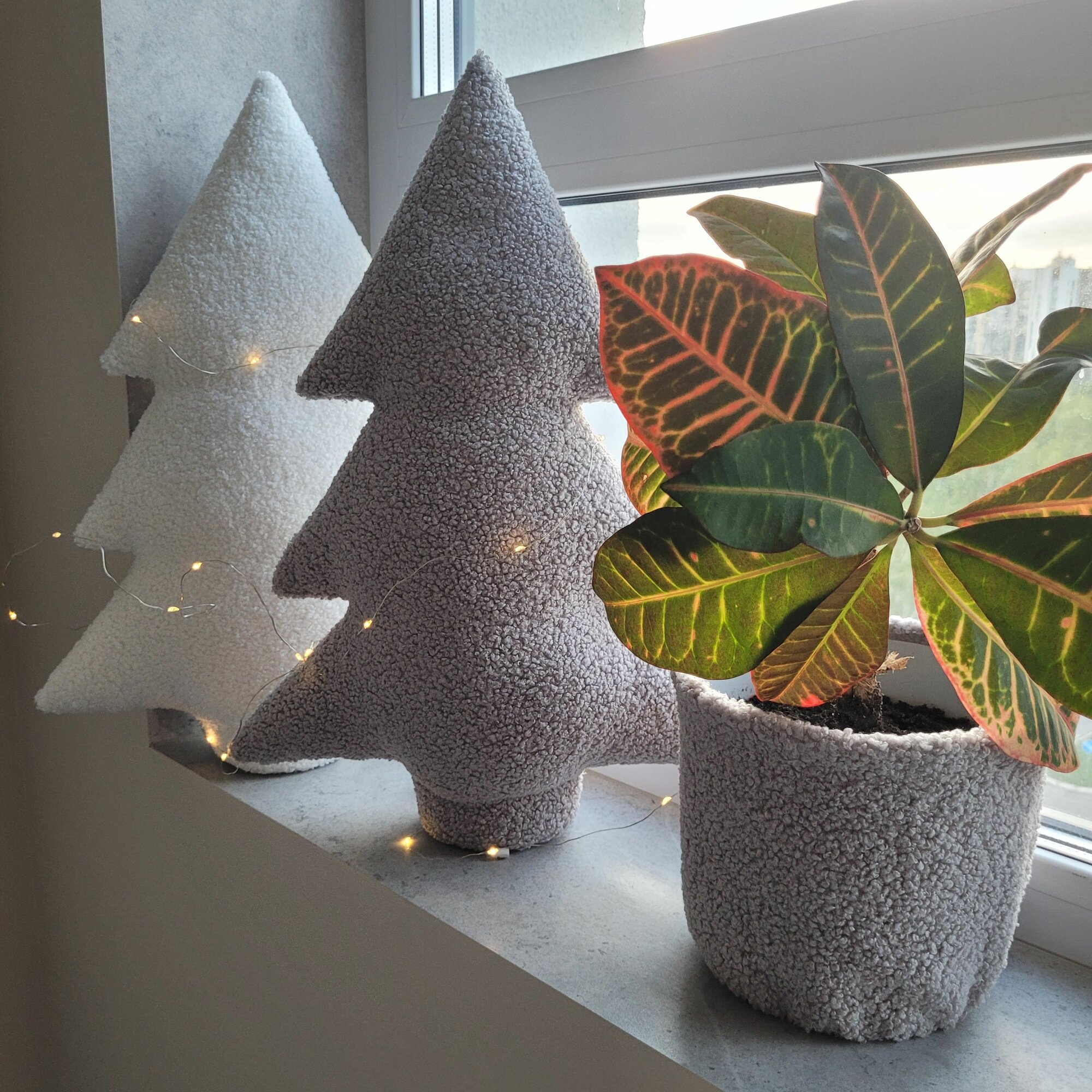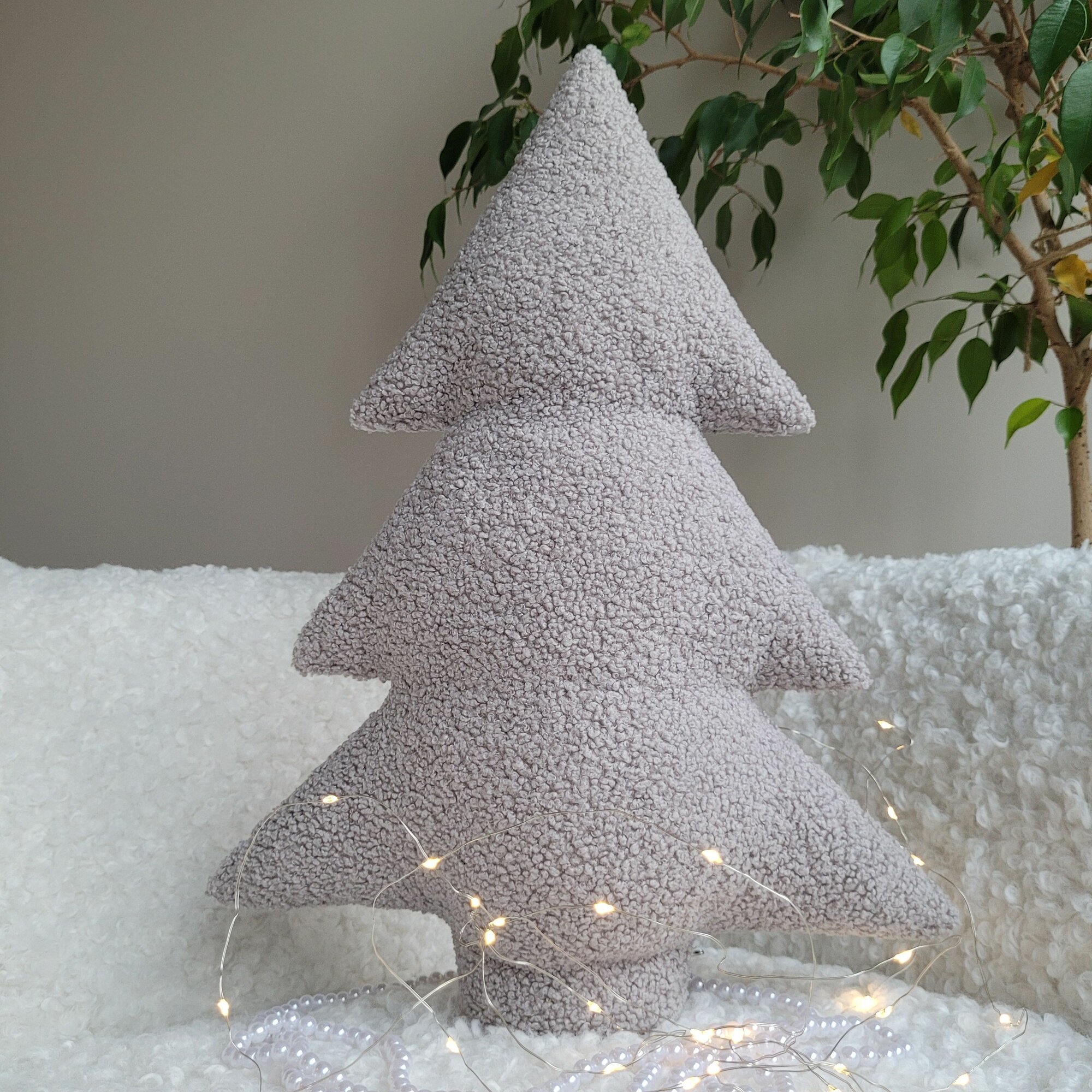Подушка Елка "букле" 30см (светло-серый)