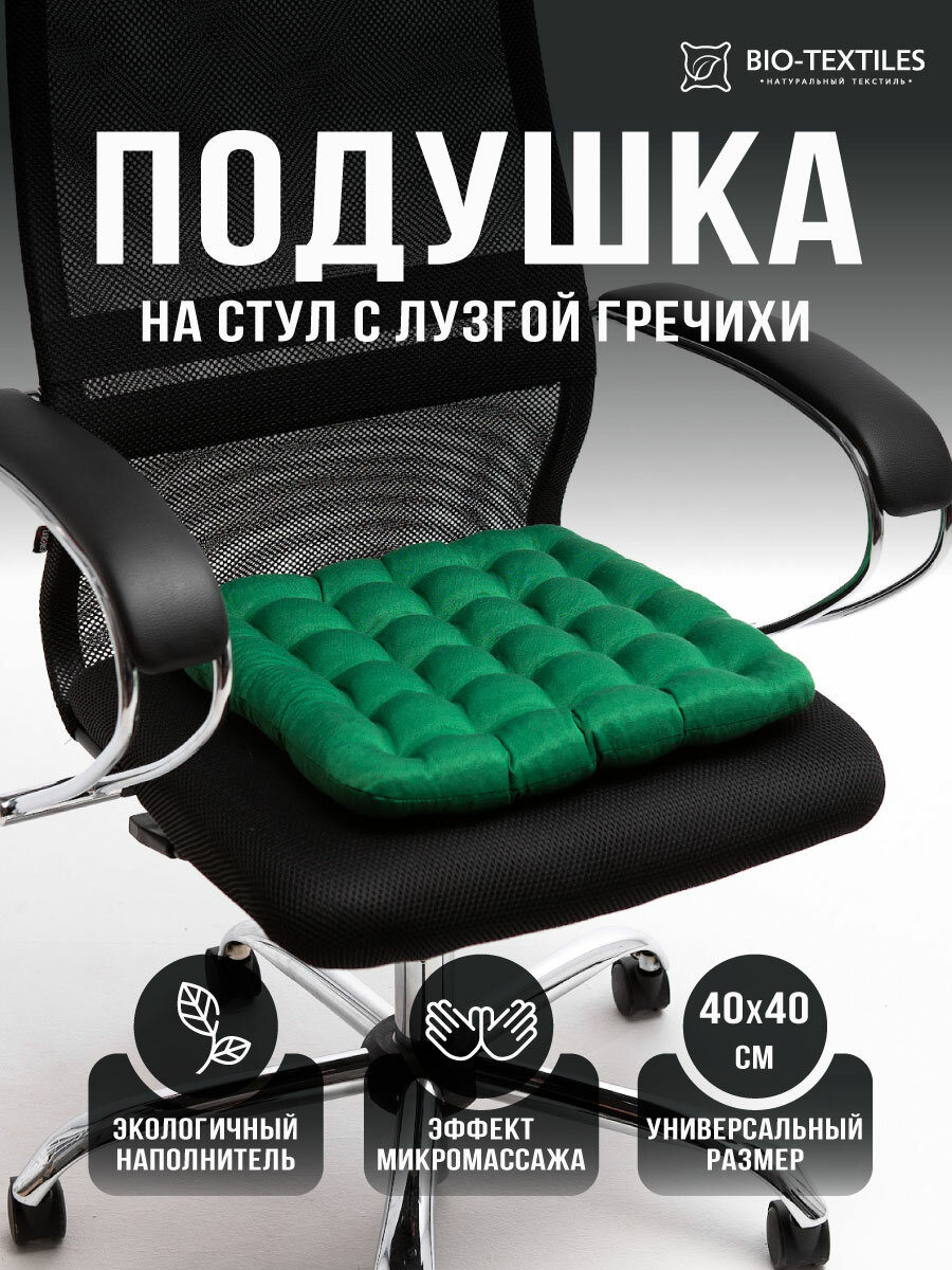 Купить Подушка на стул BIO-TEXTILES "БИО" 40*40 зеленая с лузгой гречихи ортопедическая сидушка на сиденье