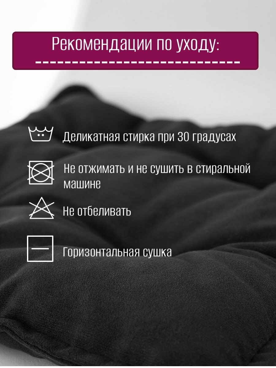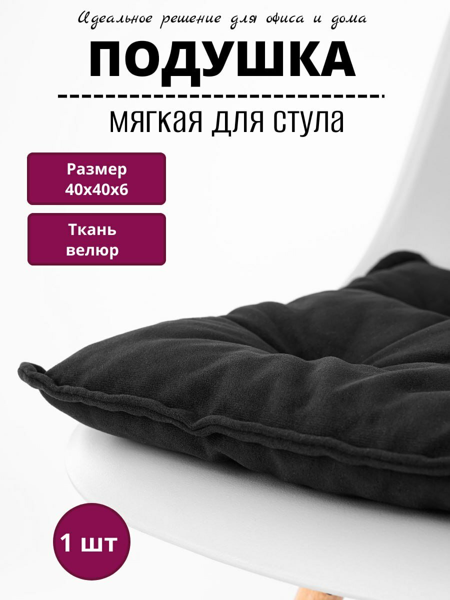 Подушка на стул, с тафтингом, квадратная, 40×40 см, чёрная, велюровый чехол интересное: