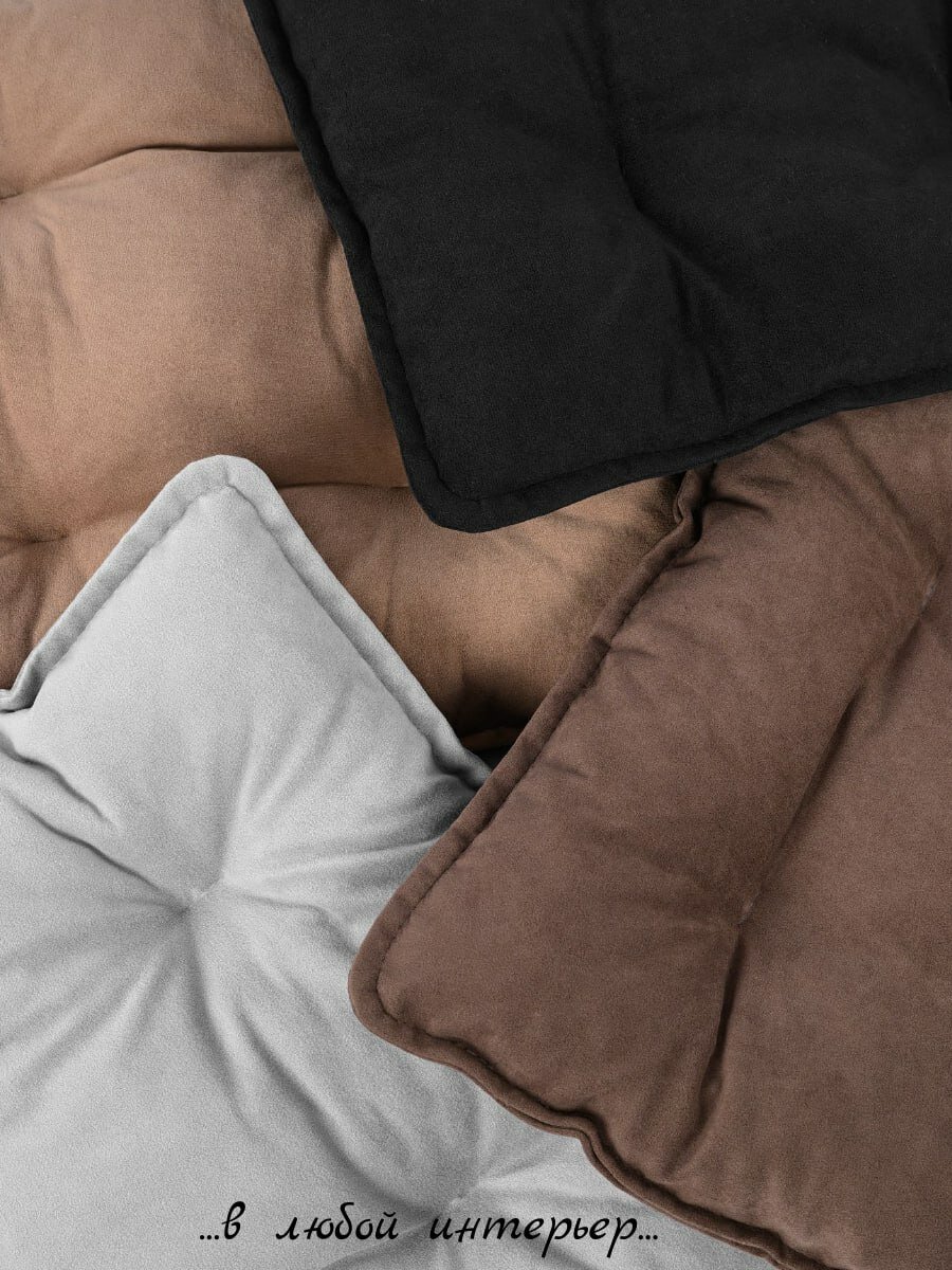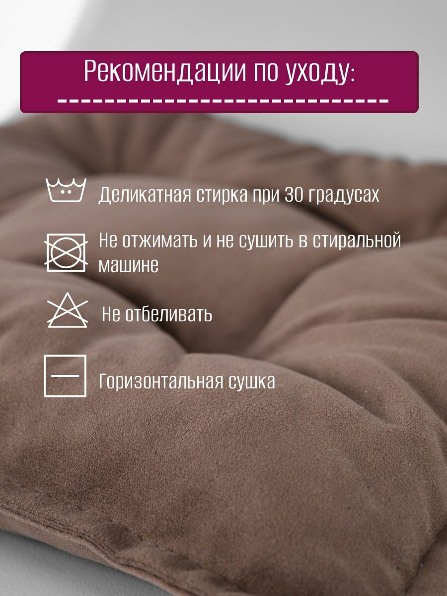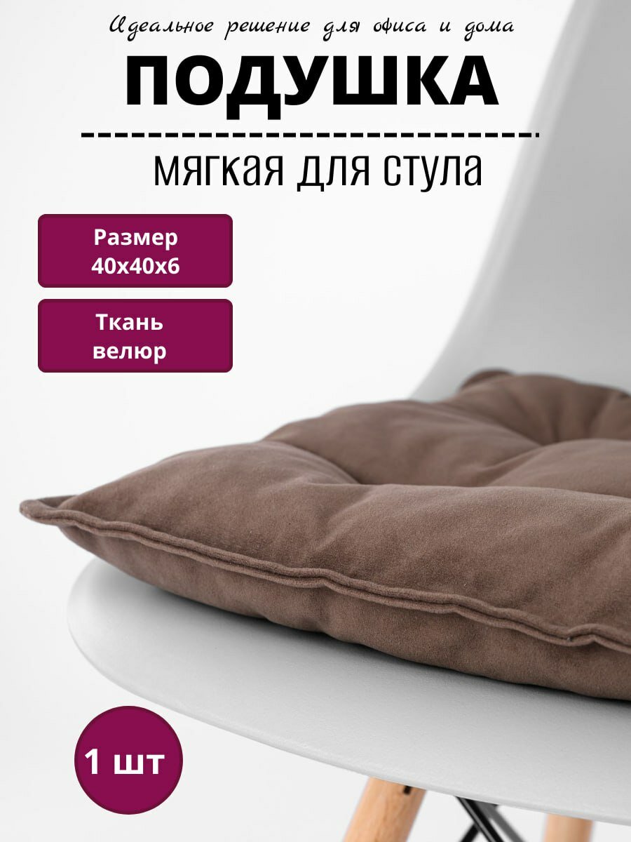 Подушка на стул, с тафтингом, квадратная, 40×40 см, коричневый, велюровый чехол интересное:
