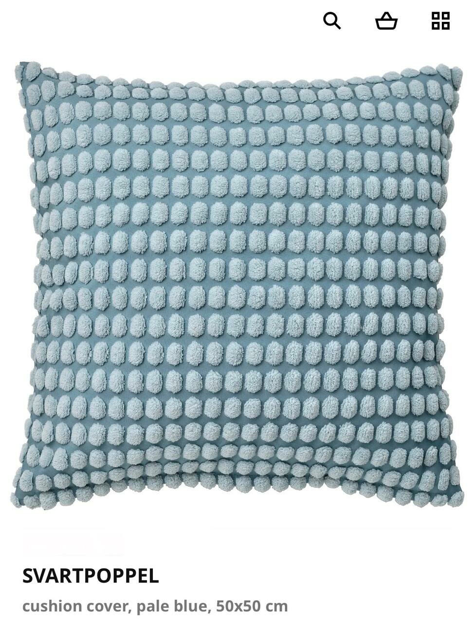 Чехол для подушки IKEA SVARTPOPPEL, бледно-голубой, 50x50см, полиэстер интересное: