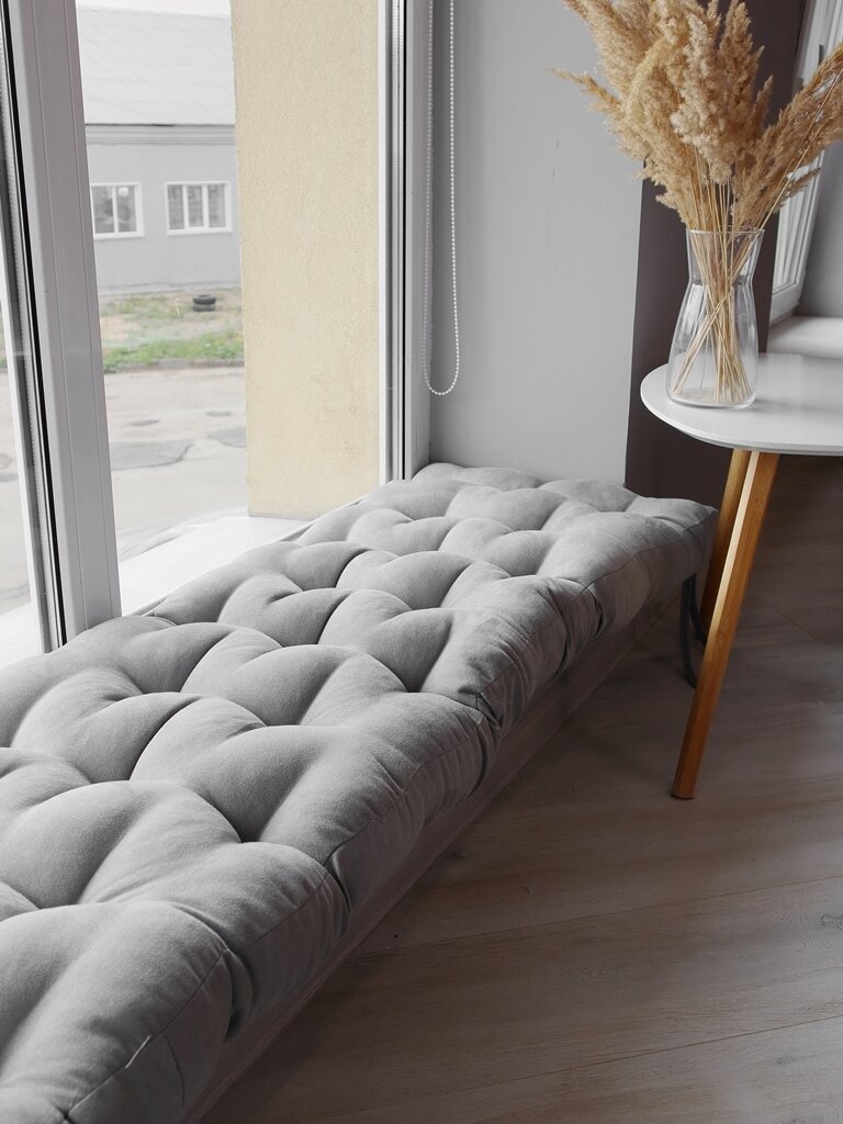 Подушка для скамьи 148х42х8 с тафтингом, иск. замша, серый интересное: