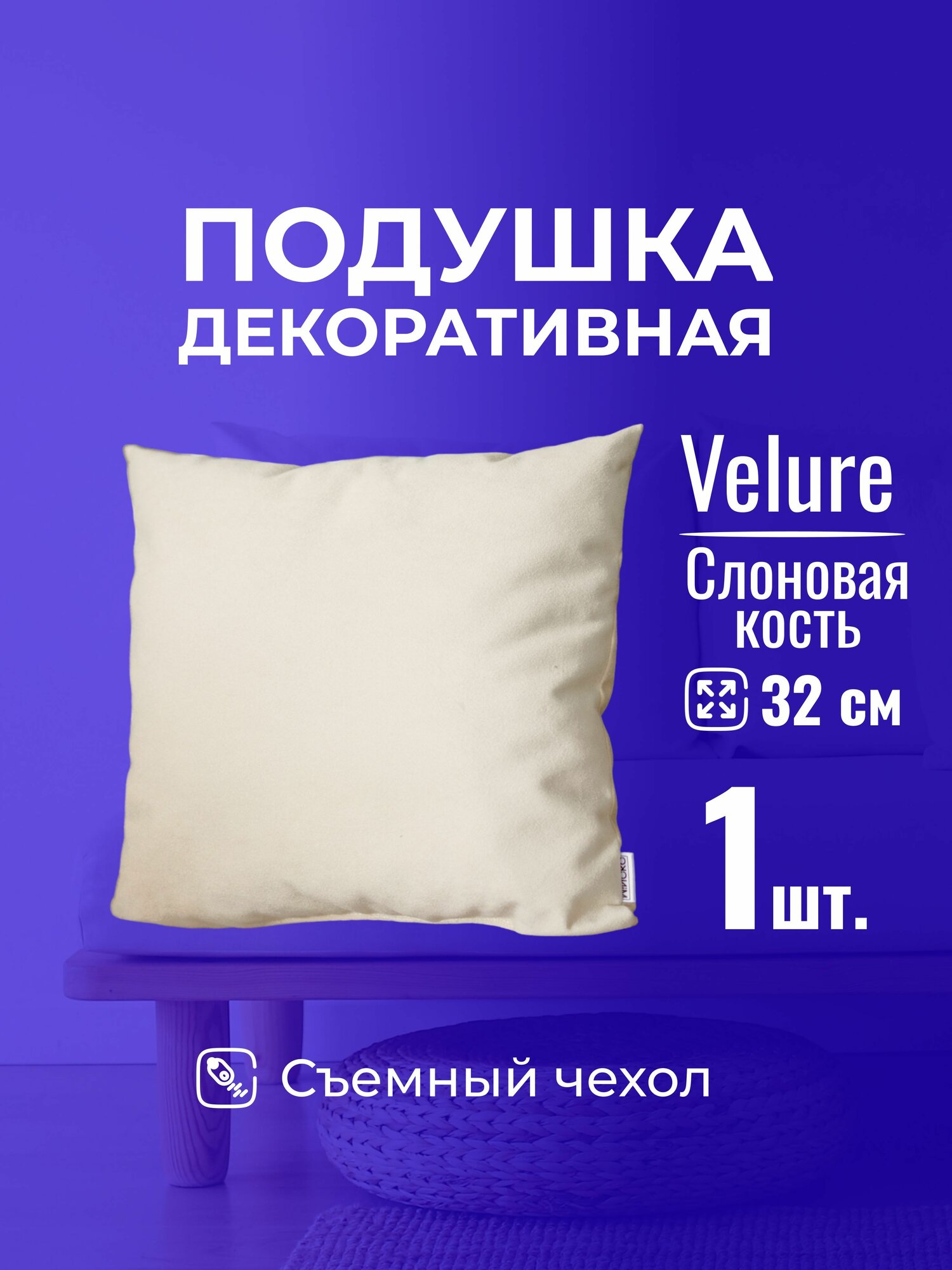 Купить Подушка декоративная с молнией 32 х 32 MINOKO Velure Слоновая кость