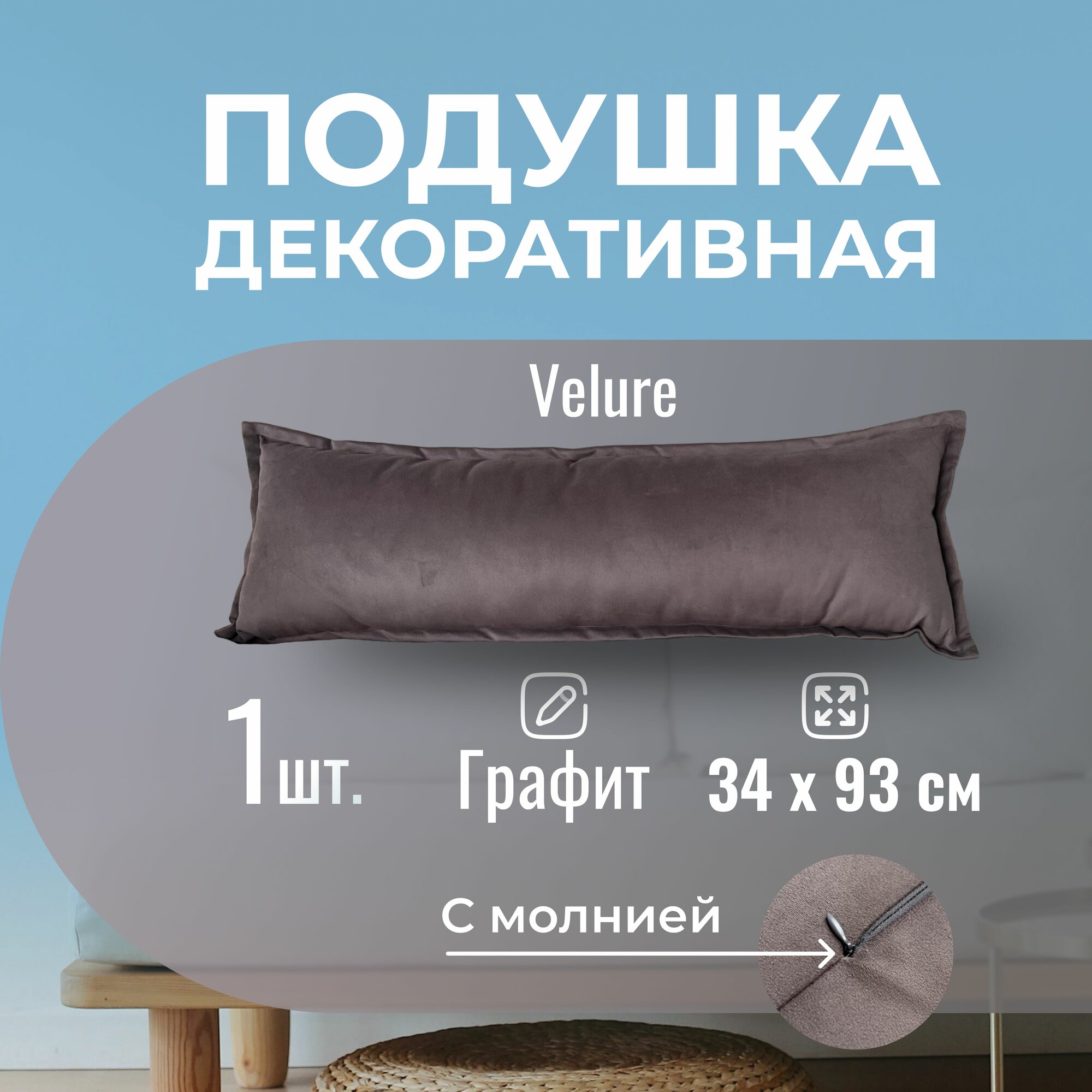 СохранитьПодушка декоративная / диванная 34 х 93 MINOKO Velure Графит / Съемный чехол интересное: