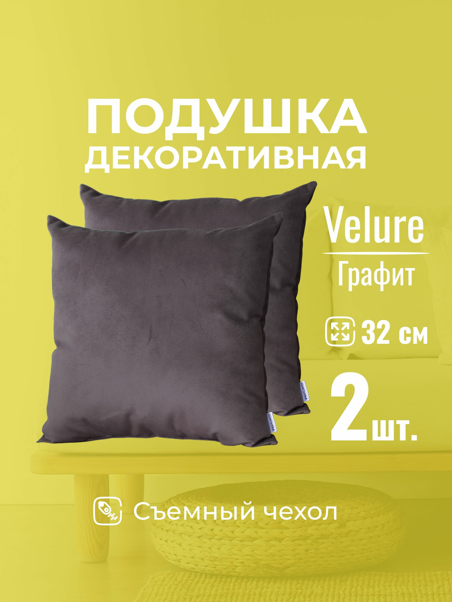 Подушка декоративная c молнией 32 х 32 MINOKO Velure БНабор 2 шт.