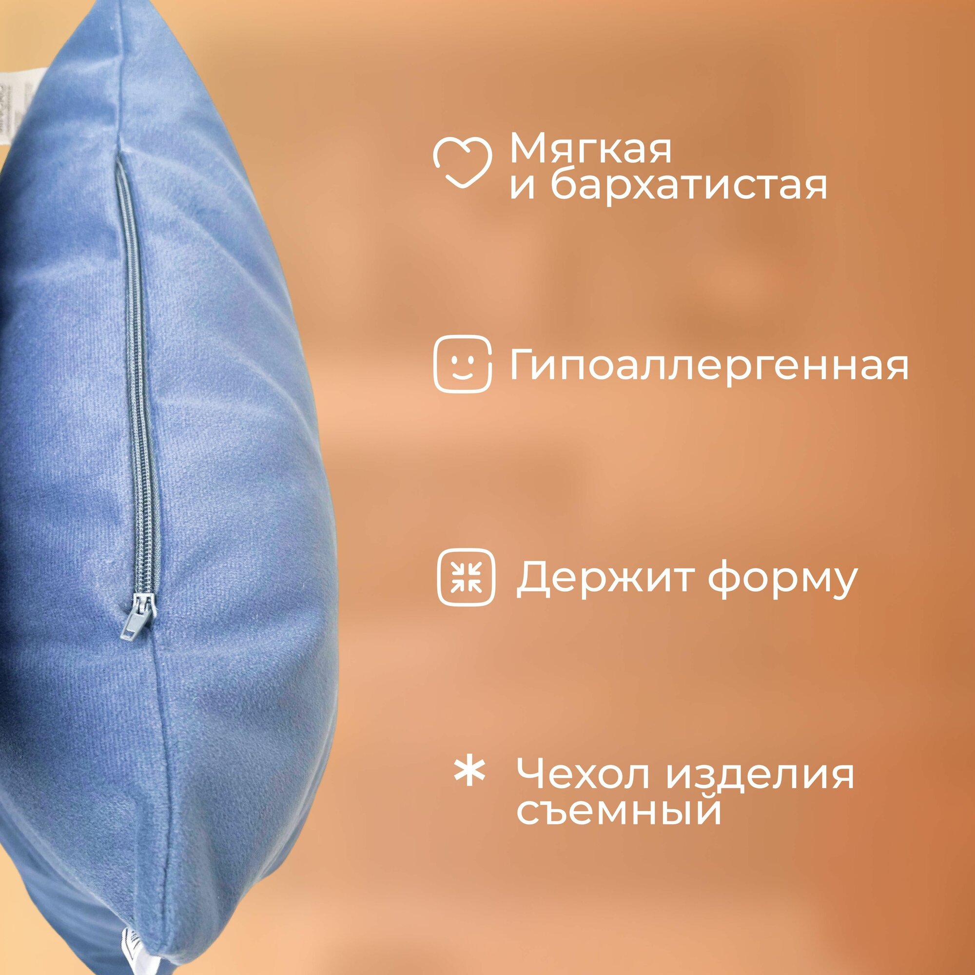 СохранитьПодушка декоративная c молнией 45 х 45 MINOKO Velure Атлантика интересное: