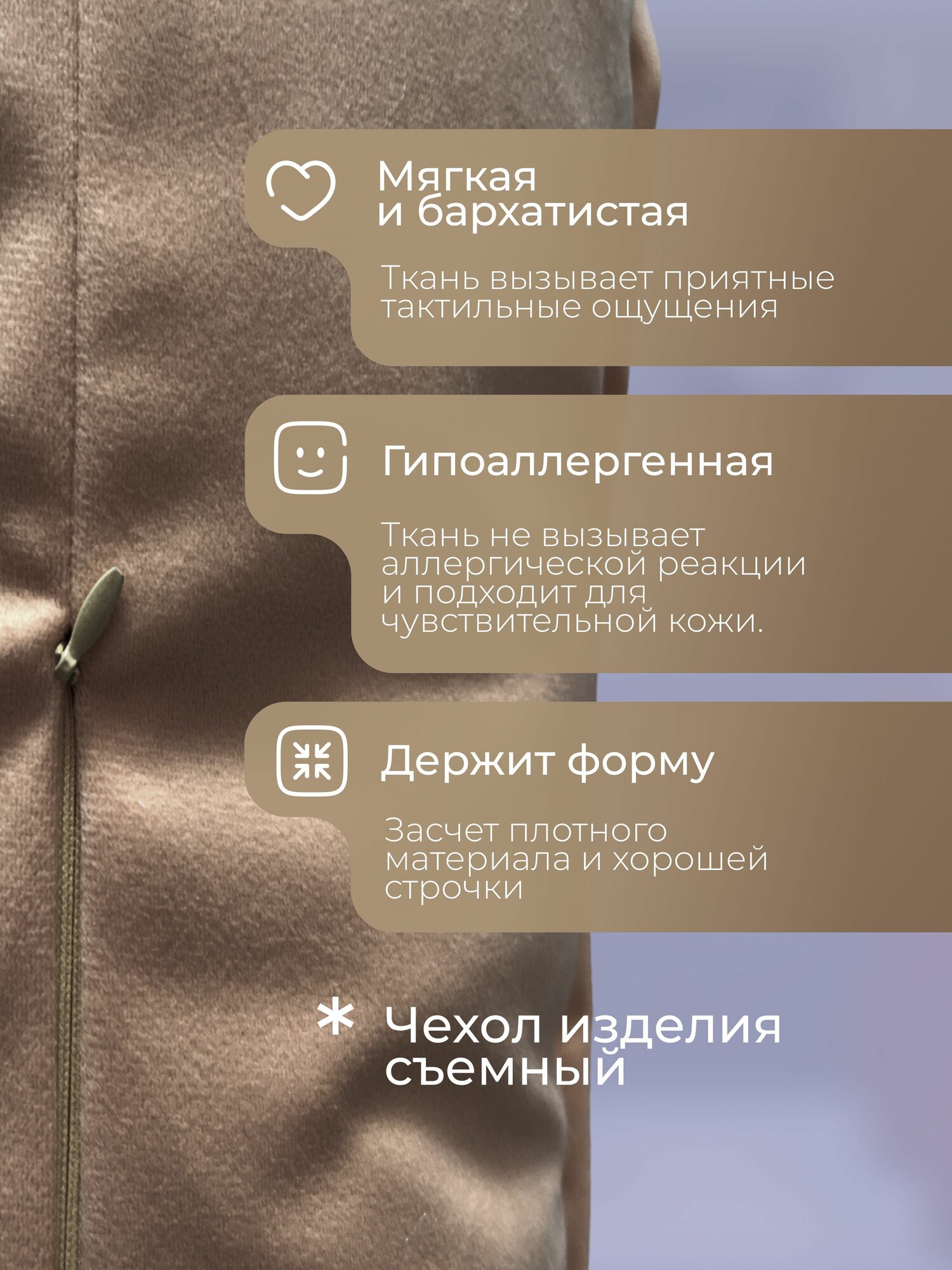 Подушка декоративная / диванная 34 х 93 MINOKO Velure Мокко / Съемный чехол
