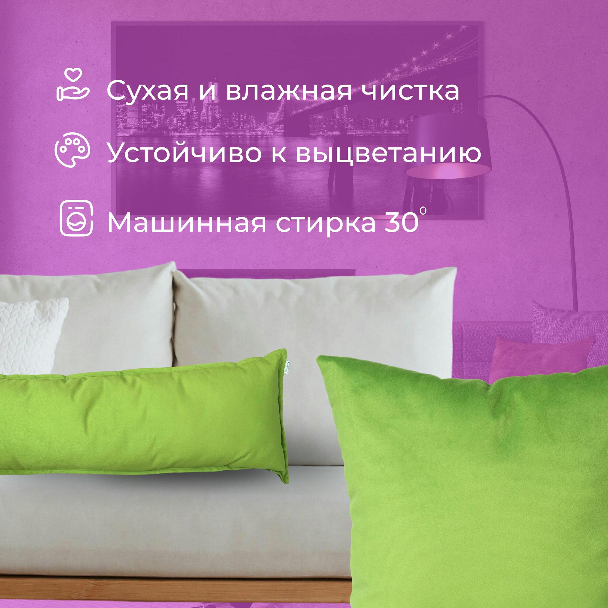 СохранитьПодушка декоративная / диванная 34 х 93 MINOKO Velure Киви 2 шт. / Съемный чехол интересное: