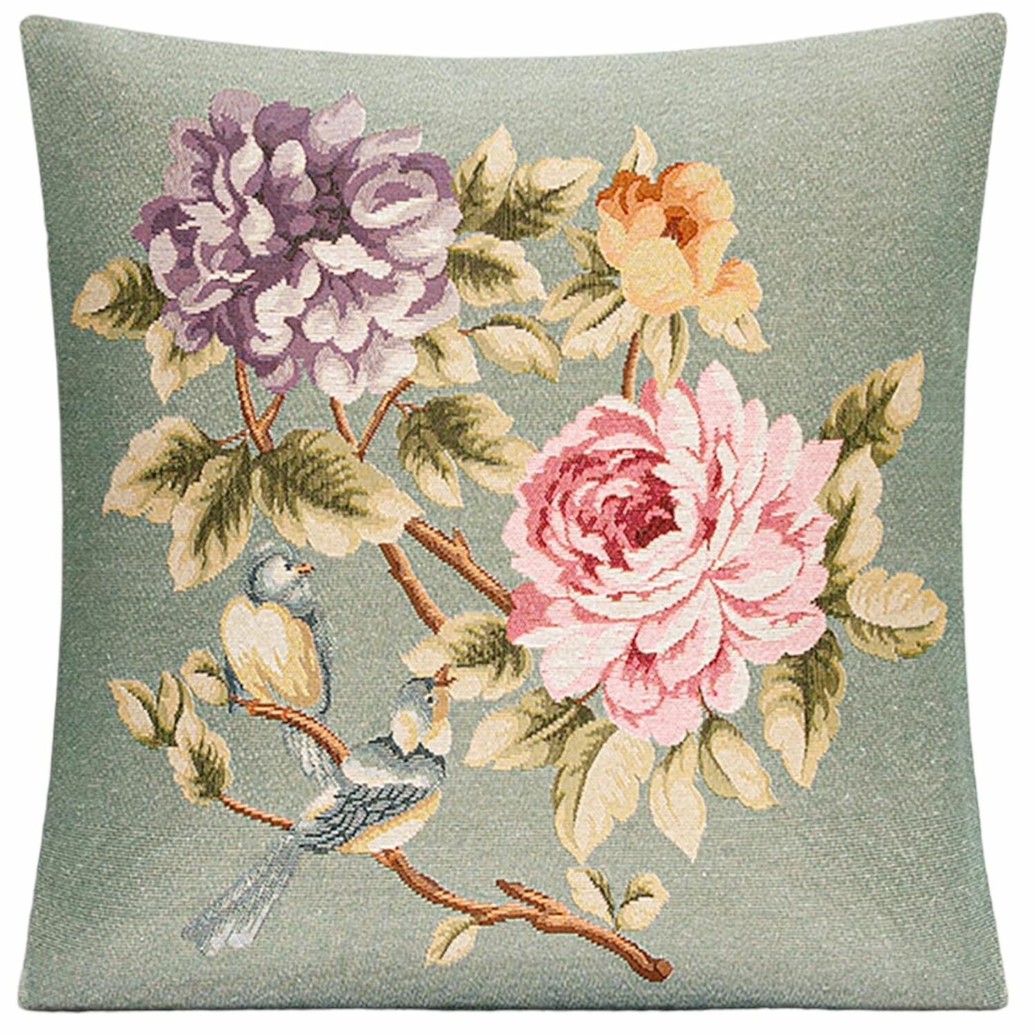 Наволочка декоративная Le Gobelin Английский сад Весна птички голубой фон 45х45 см