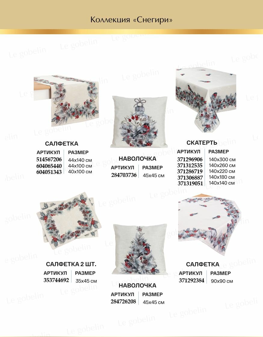 Новогодняя наволочка Le Gobelin Снегири Елка 45х45 см