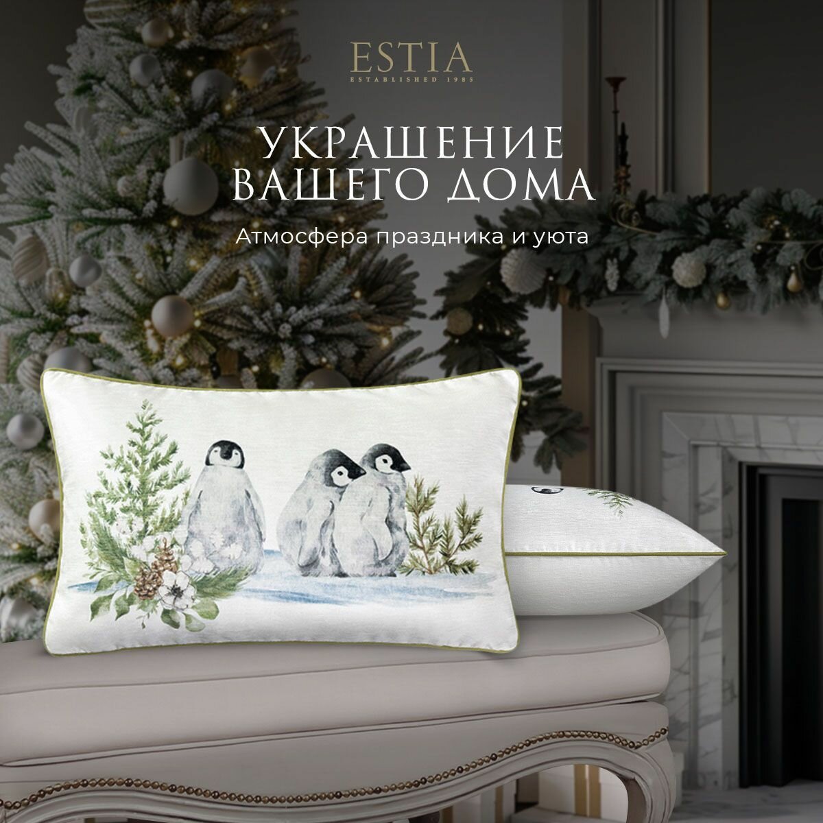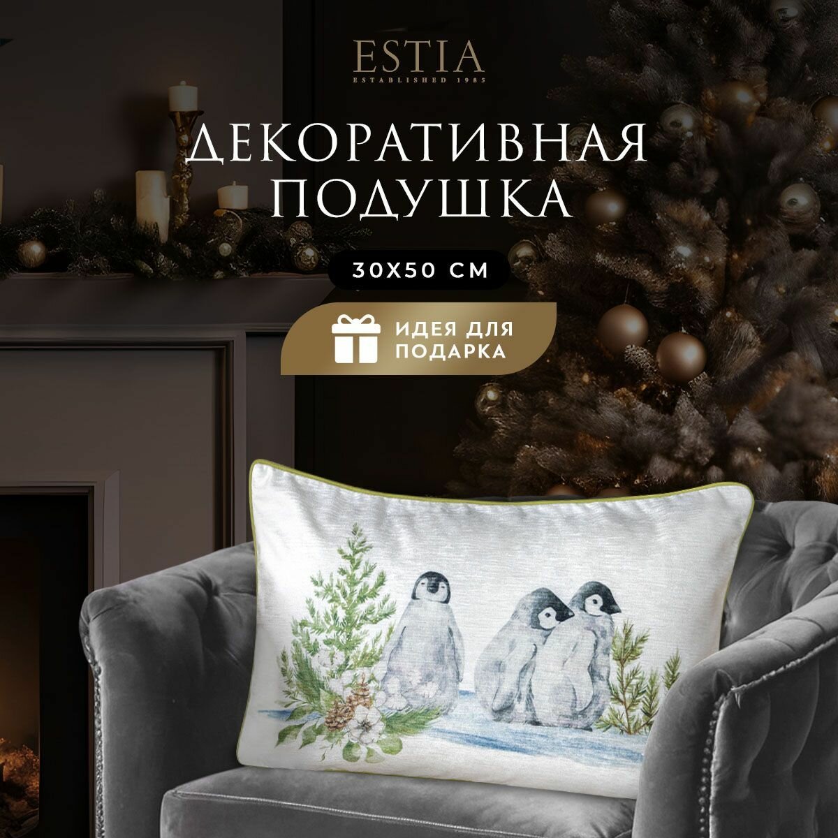 Купить ESTIA Подушка декоративная в подарок "Эрреро" с молнией "Пингвины", 30x50