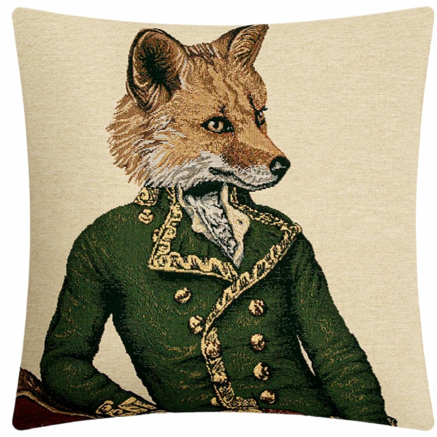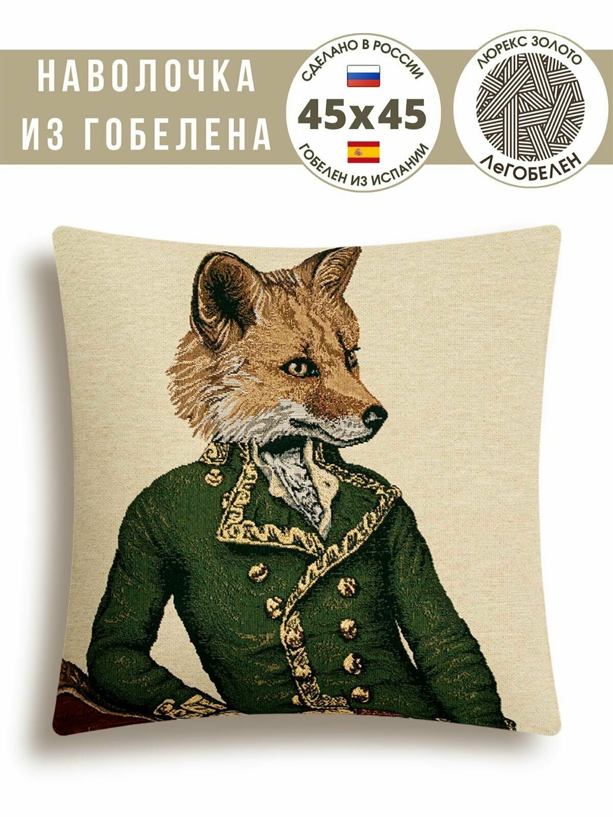 Наволочка декоративная Le Gobelin Лис офицер зеленый 45х45 см интересное: