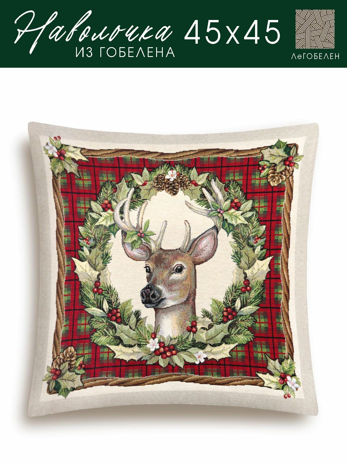 Наволочка на Новый год Le Gobelin Олень клетка 45х45 см интересное: