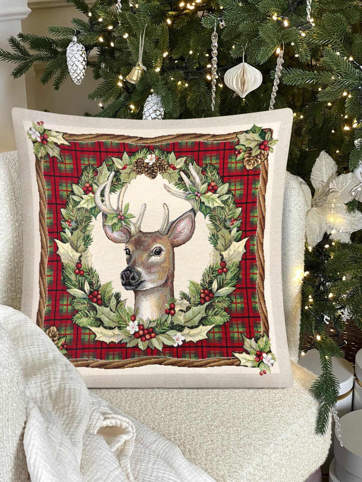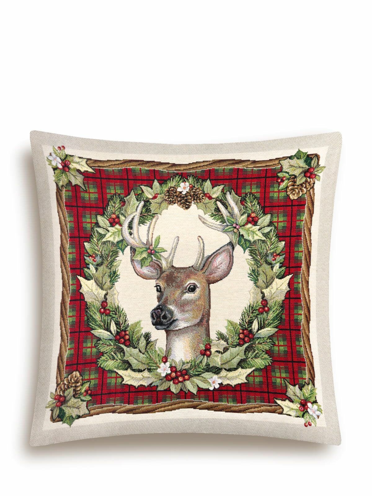 Купить Наволочка на Новый год Le Gobelin Олень клетка 45х45 см