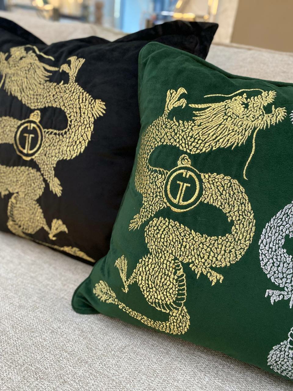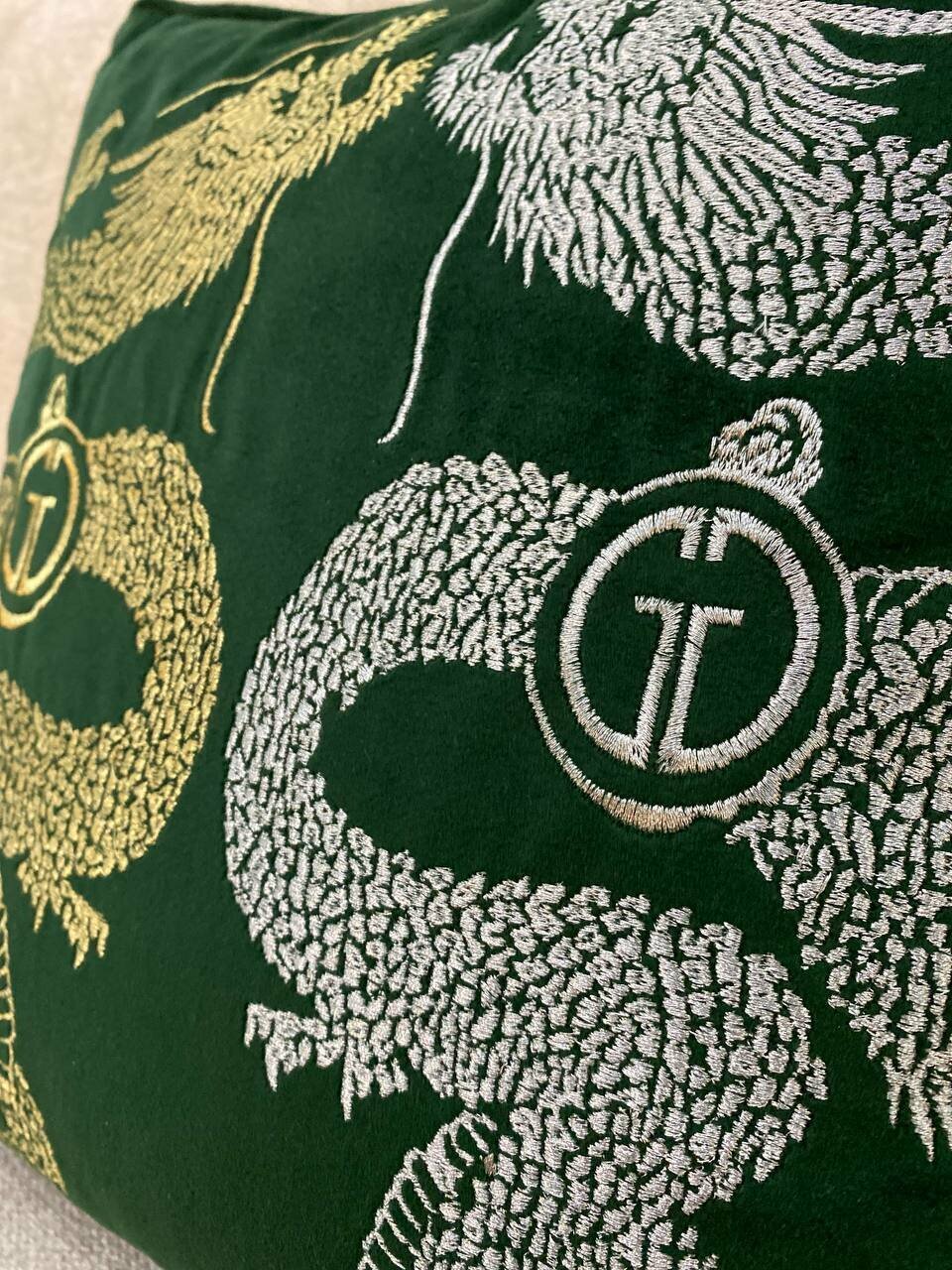 Купить Подушка вышивка "Пара драконов" зеленый 45*45см
