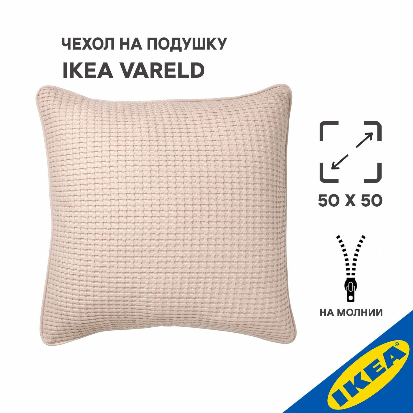 Купить Чехол на подушку 50x50 см 2 шт. светло-бежевый IKEA VARELD ворельд
