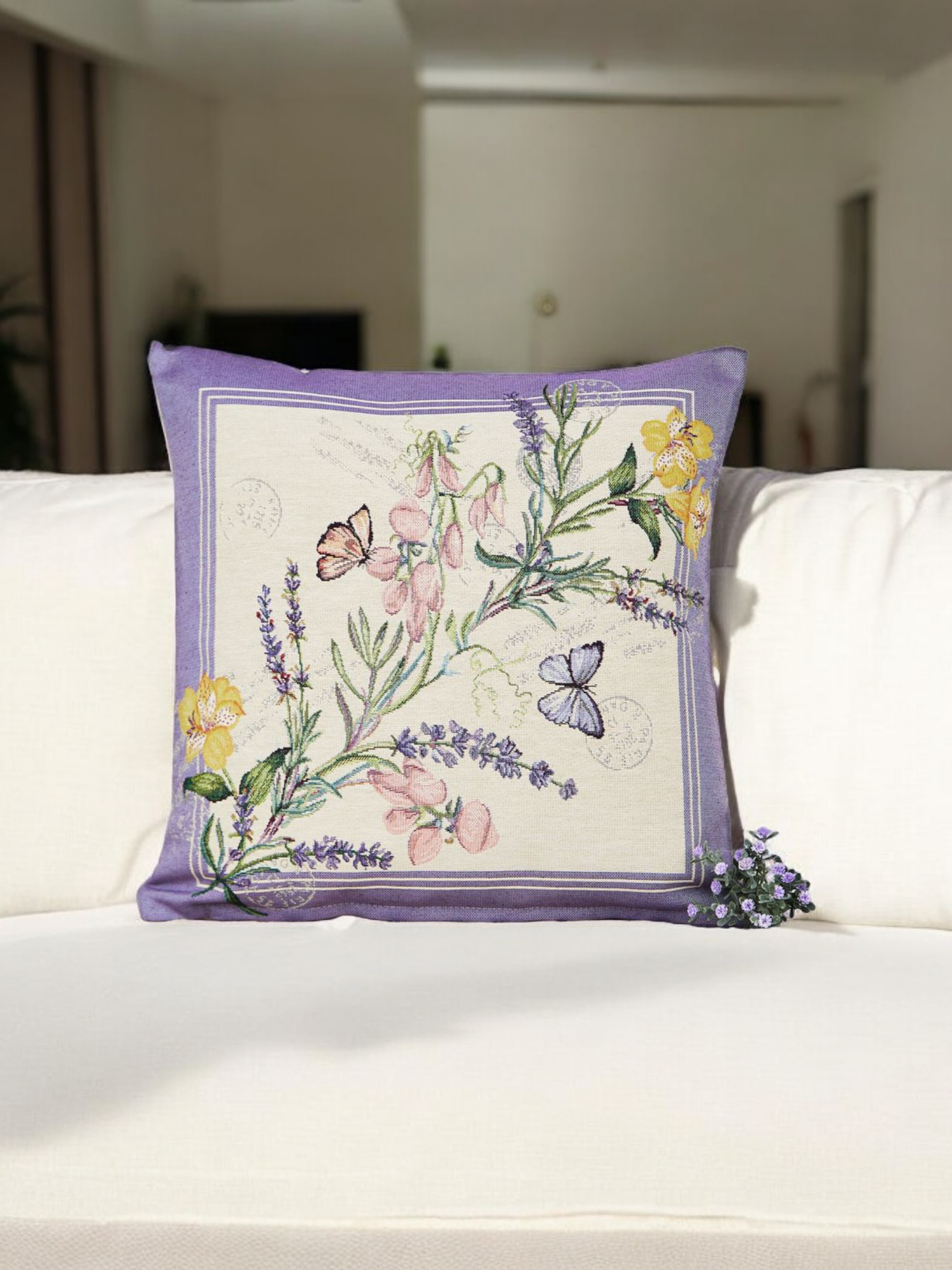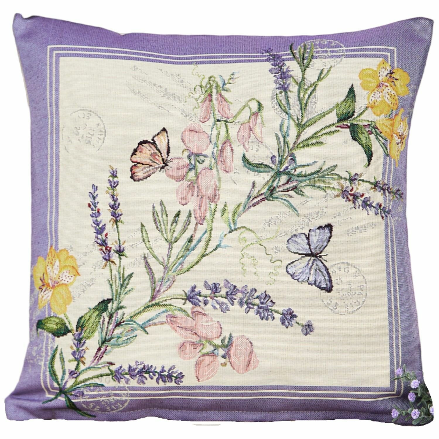 Гобеленовая наволочка Le Gobelin Бабочки серый фон 45х45 см