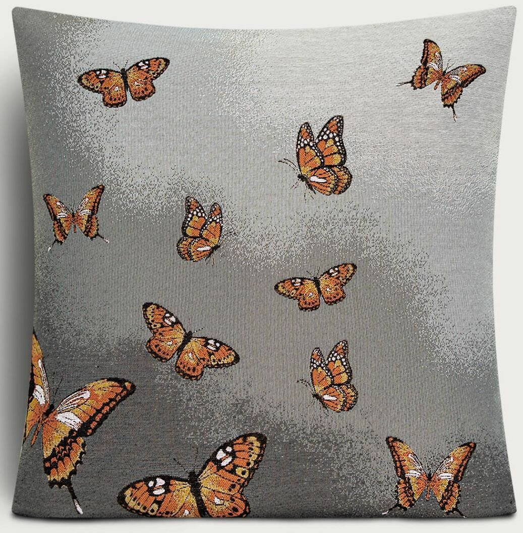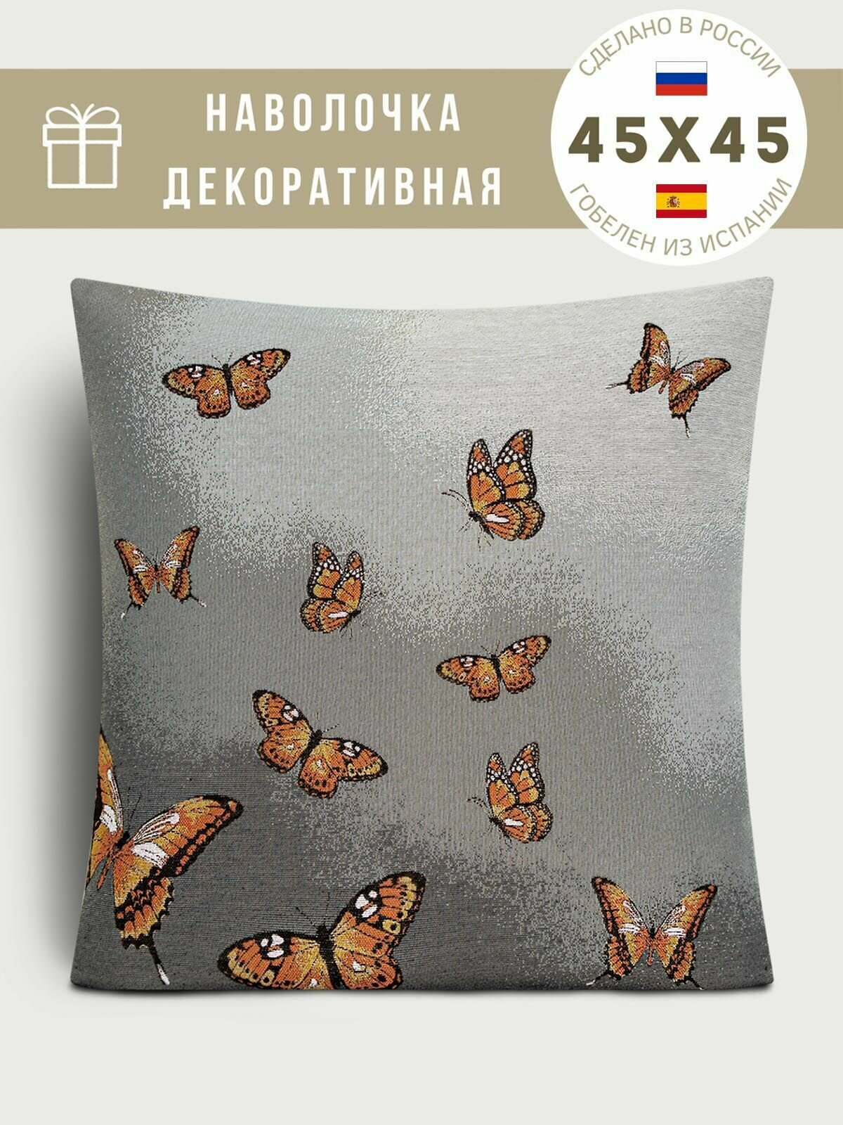 Купить Гобеленовая наволочка Le Gobelin Бабочки серый фон 45х45 см