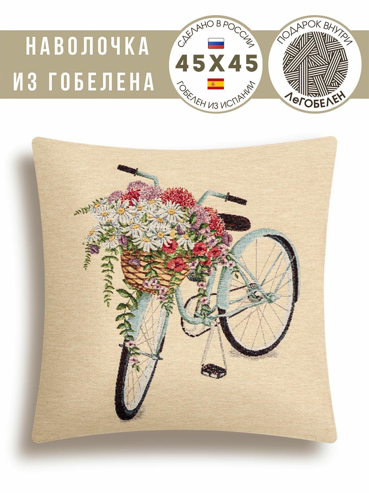 СохранитьНаволочка декоративная Le Gobelin Велосипед ромашки 45x45 см интересное: