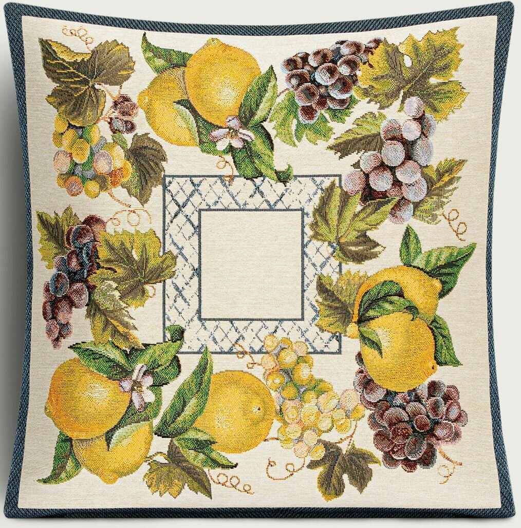 Наволочка декоративная Le Gobelin Жюра Виноград и лимоны зеленый бордюр 45х45 см