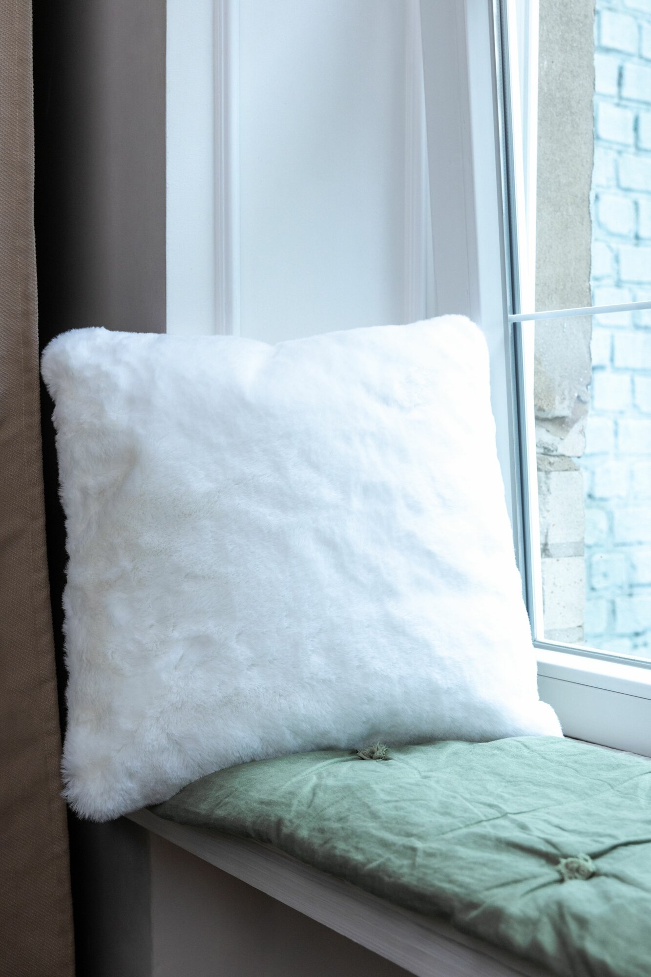 Купить Подушка декоративная из кроличьего меха однотонная, 45х45см, белый