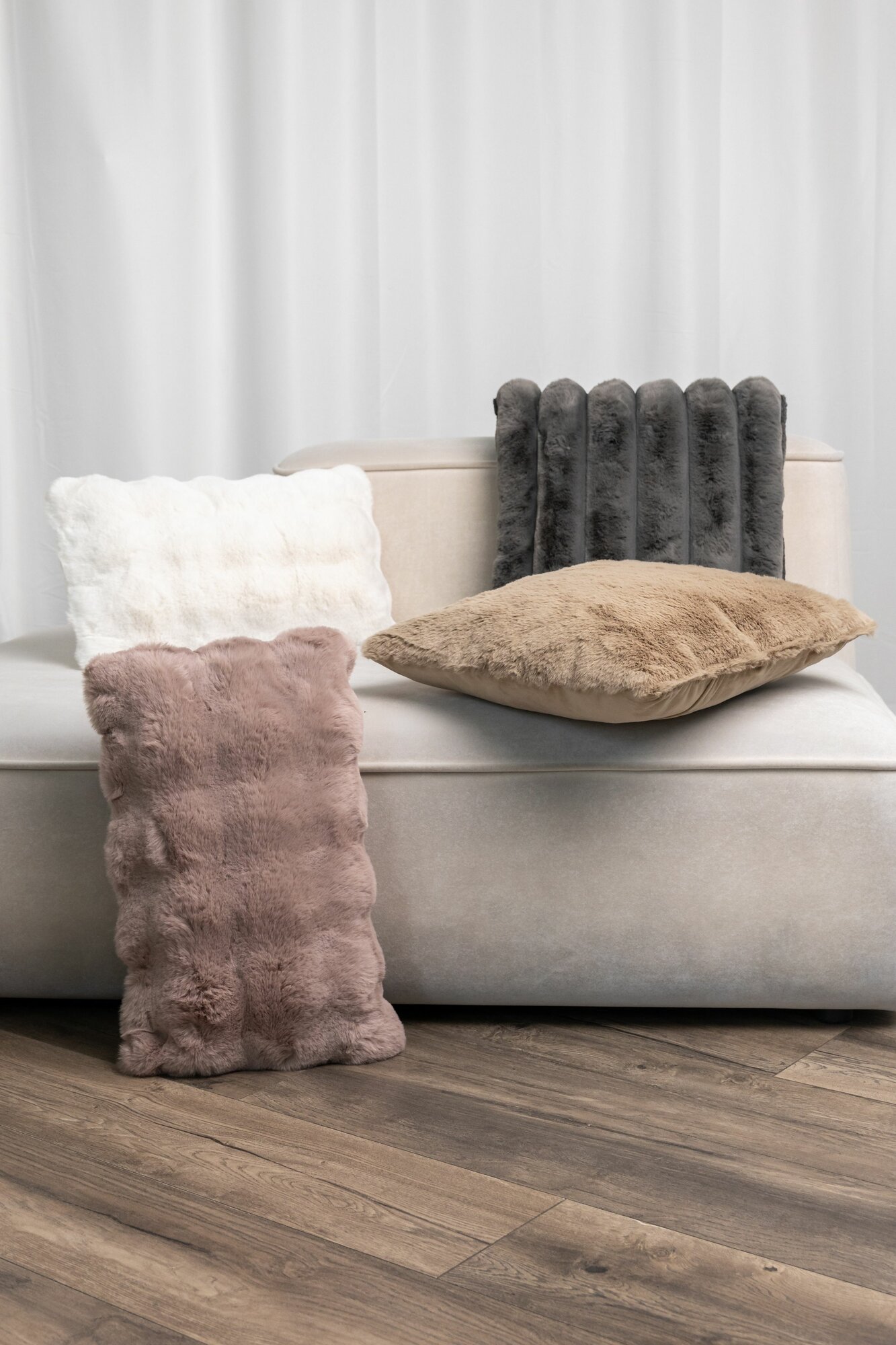 Подушка декоративная из кроличьего меха однотонная, 45х45см, бежевый