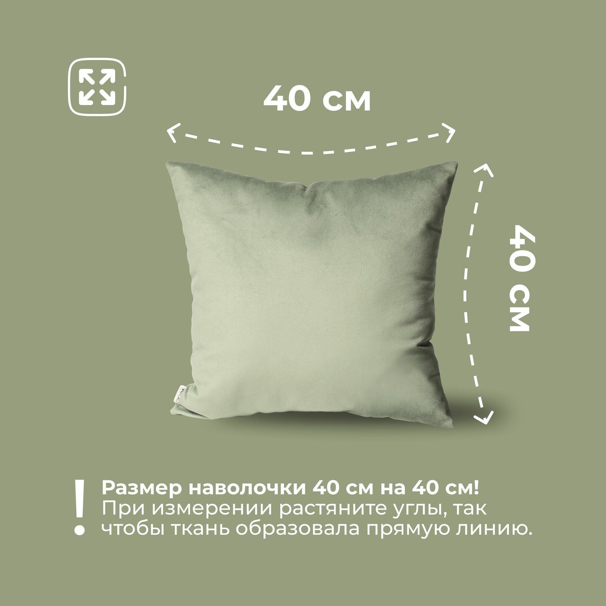 Подушка декоративная 40х40 MINOKO Velure Олива, с молнией, 1шт