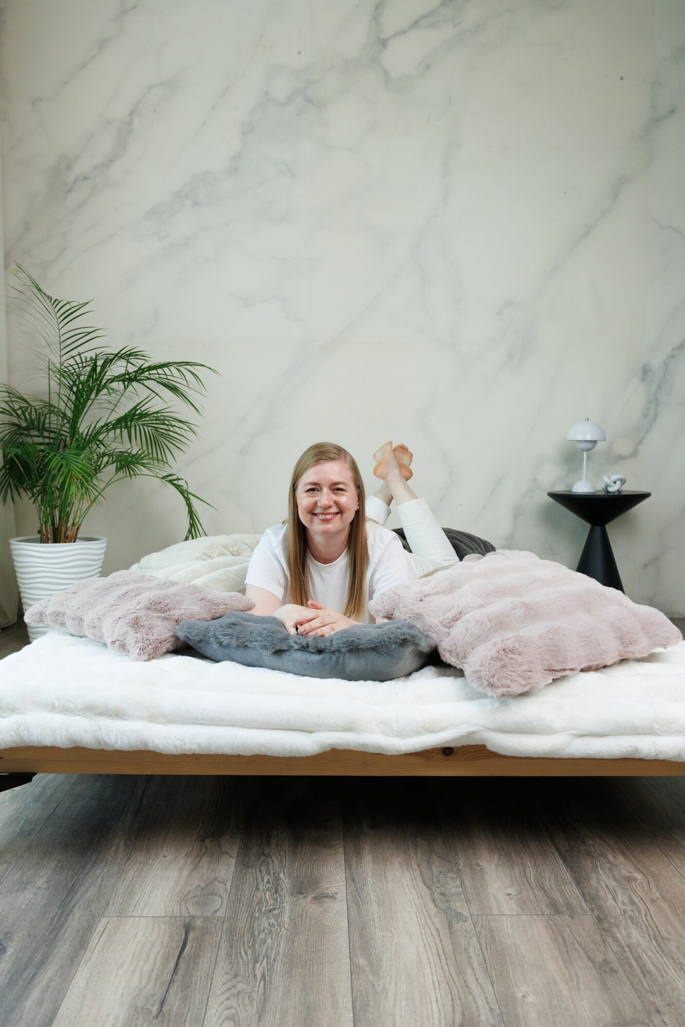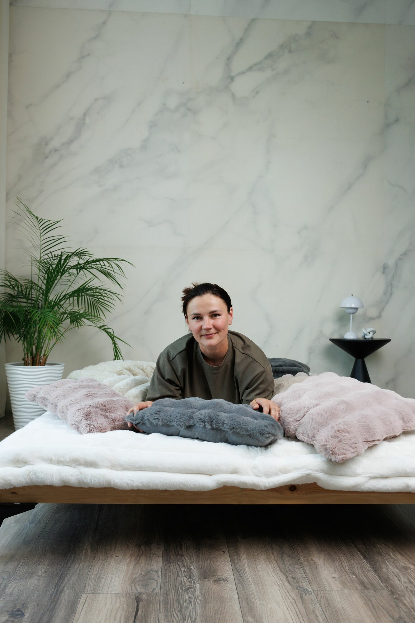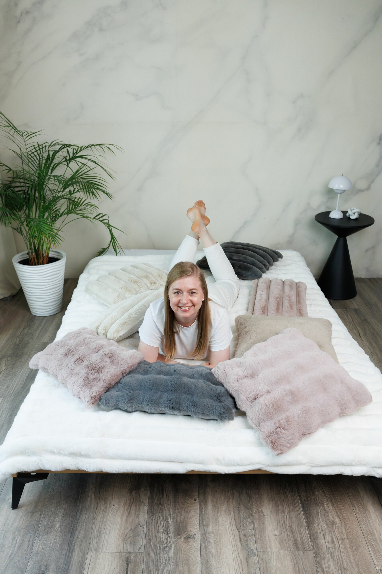 Купить Подушка декоративная из кроличьего меха в полоску, 30х50см, кремовый