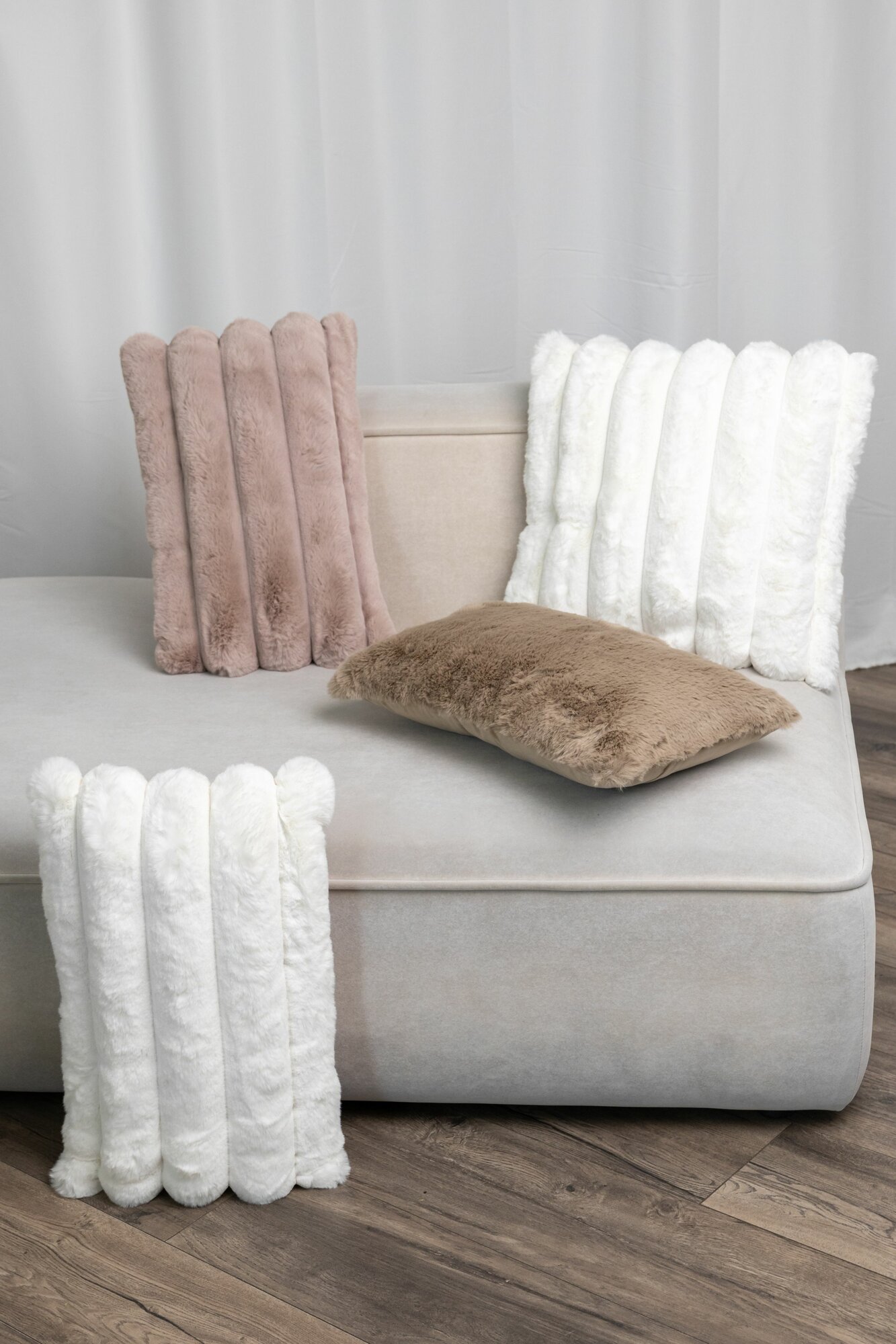 Подушка декоративная из кроличьего меха в полоску, 30х50см, белый