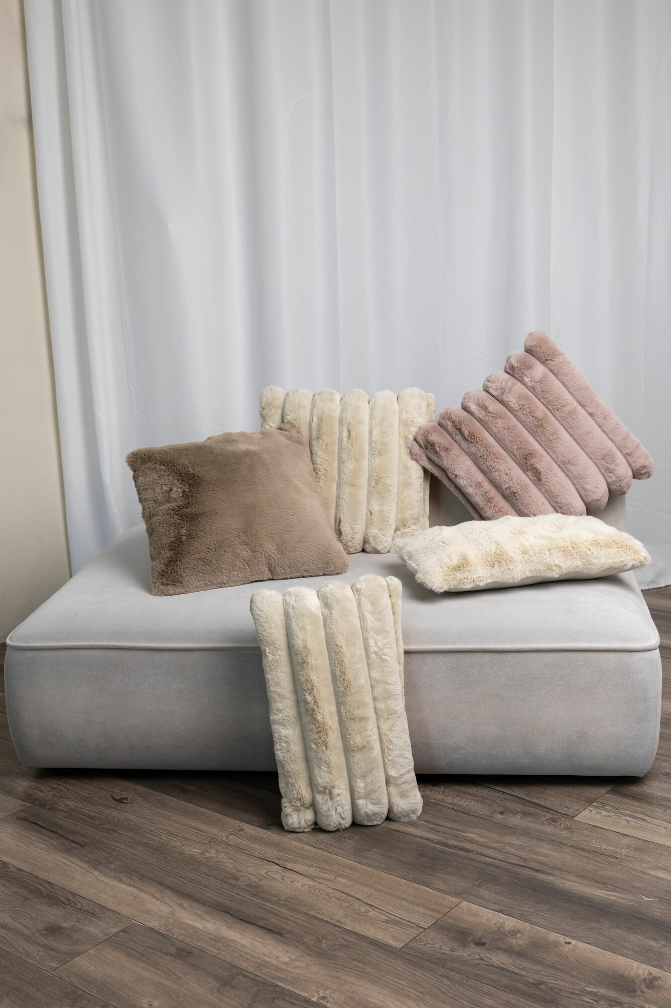 Подушка декоративная из кроличьего меха в полоску, 45х45см, кремовый
