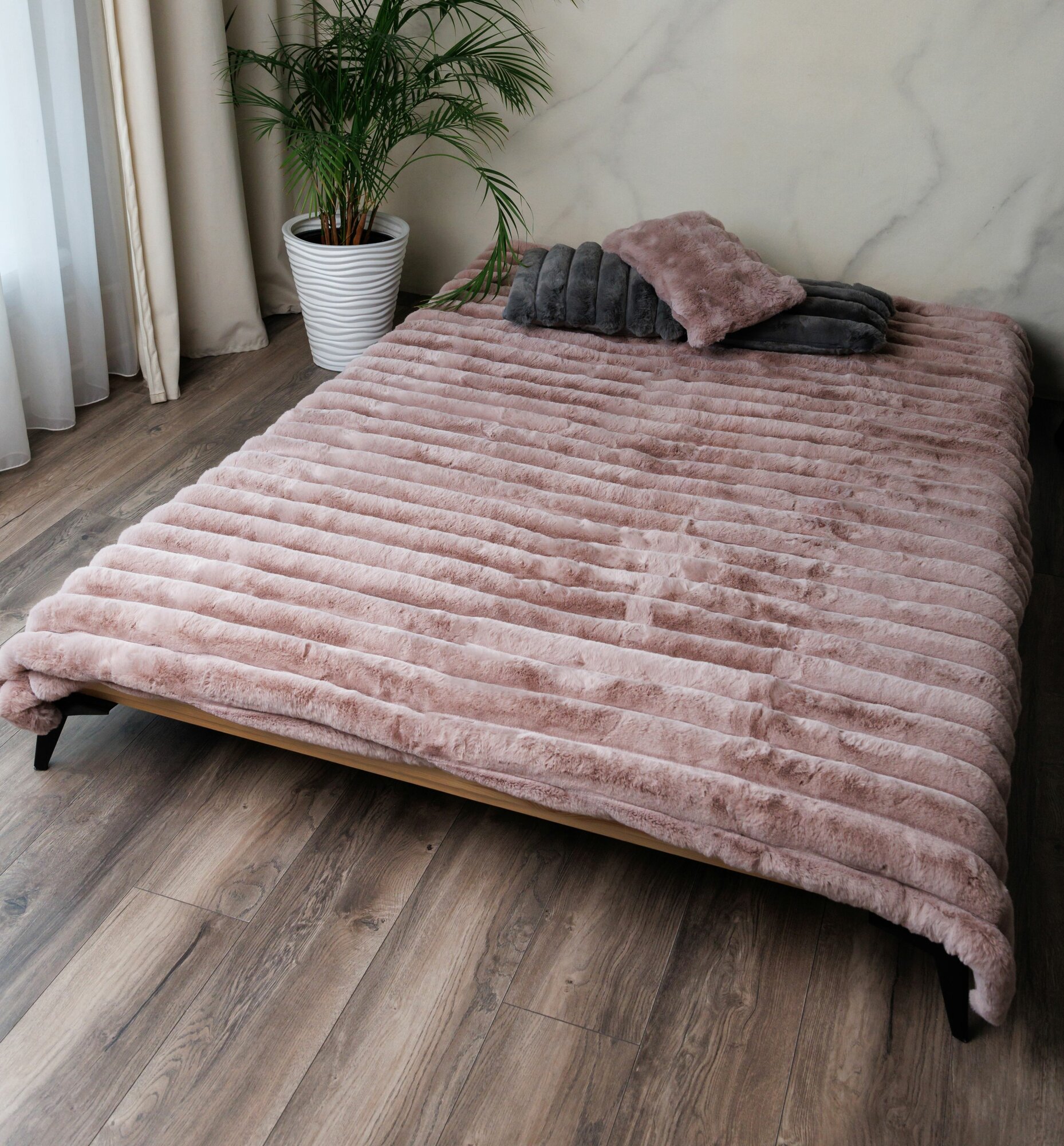 Подушка декоративная из кроличьего меха в полоску, 45х45см, розовый