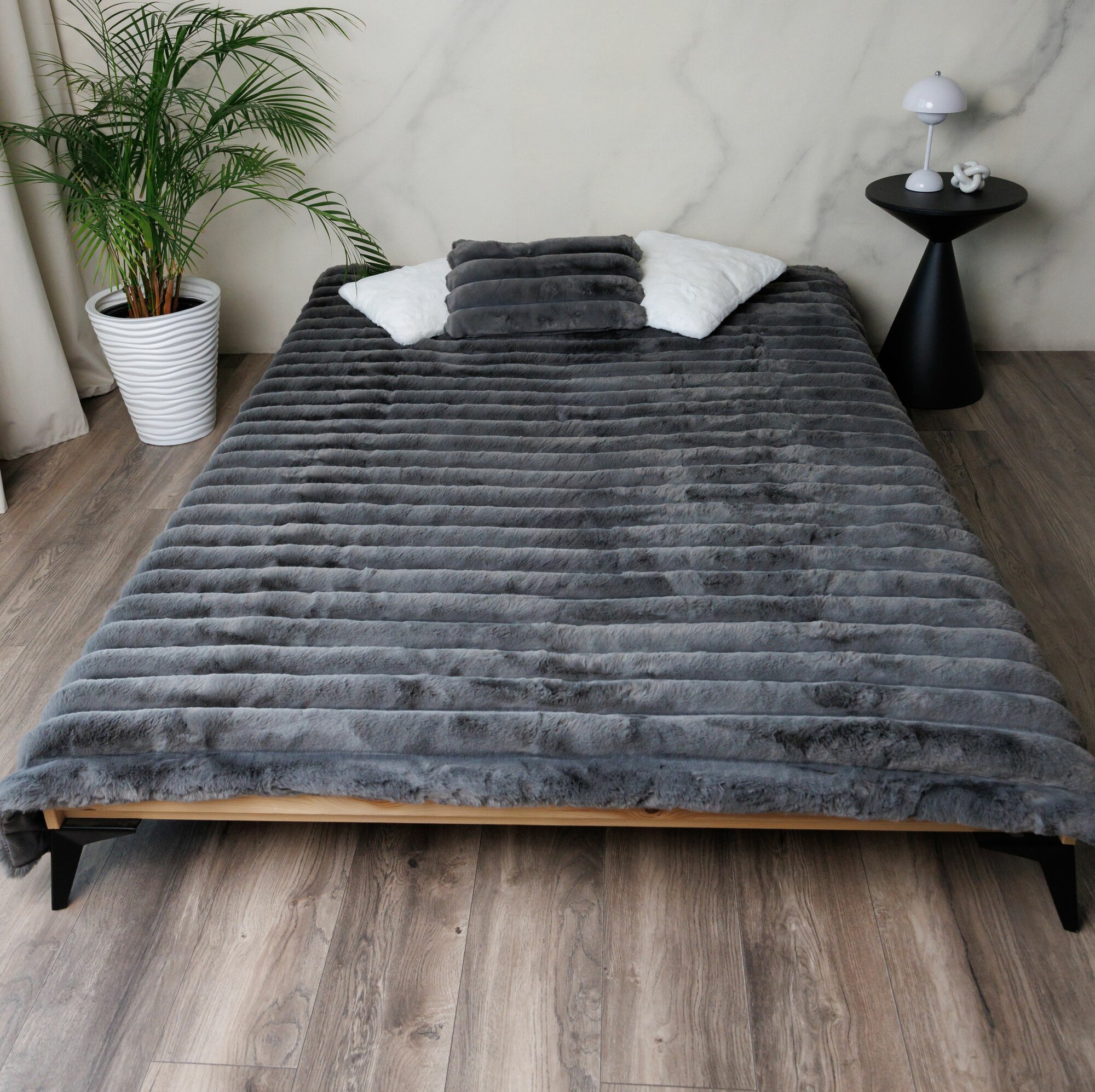Купить Подушка декоративная из кроличьего меха в полоску, 30х50см, антрацит