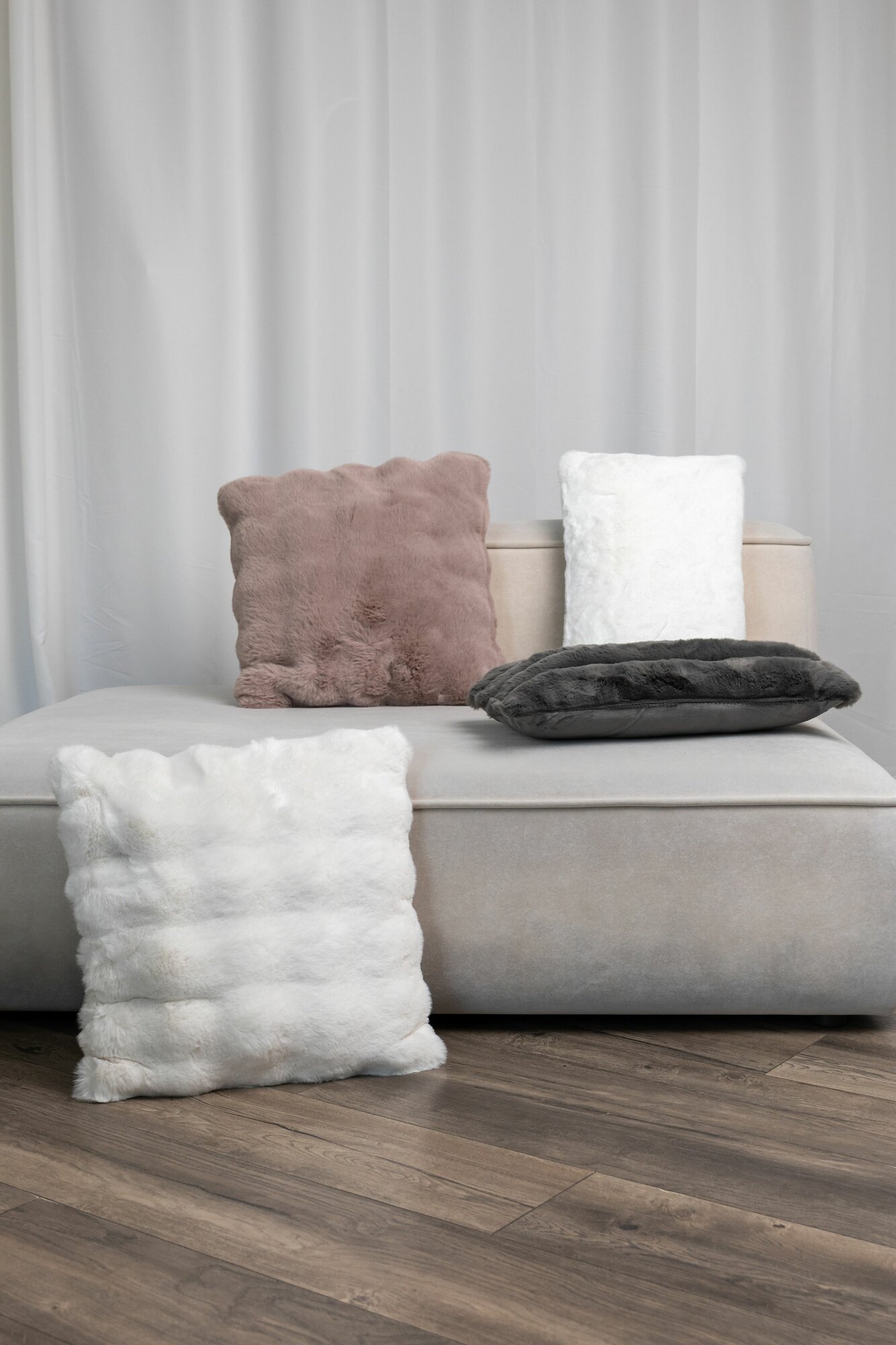 Подушка декоративная из кроличьего меха в полоску, 45х45см, белый