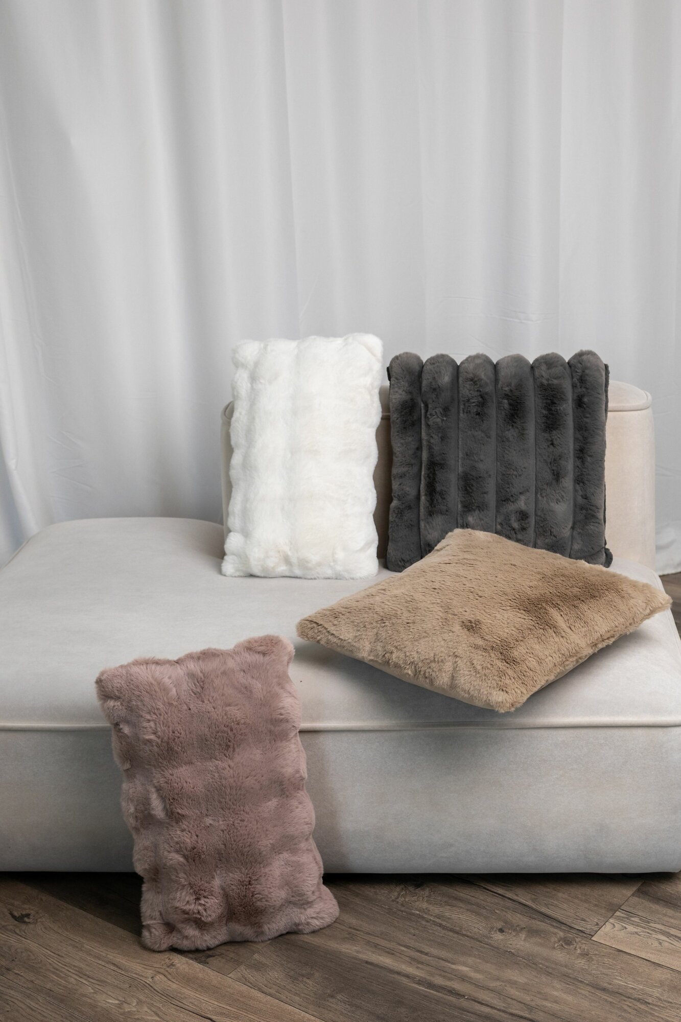Подушка декоративная из кроличьего меха в полоску, 45х45см, кремовый