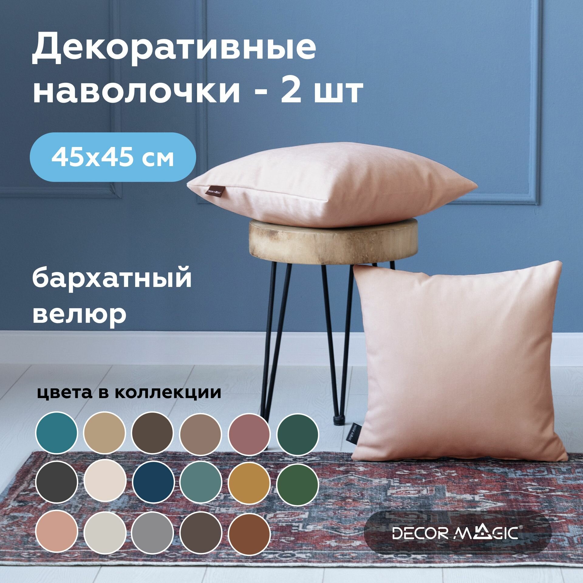 Наволочка декоративная 45х45 ULTRA COCOA на молнии 2 шт