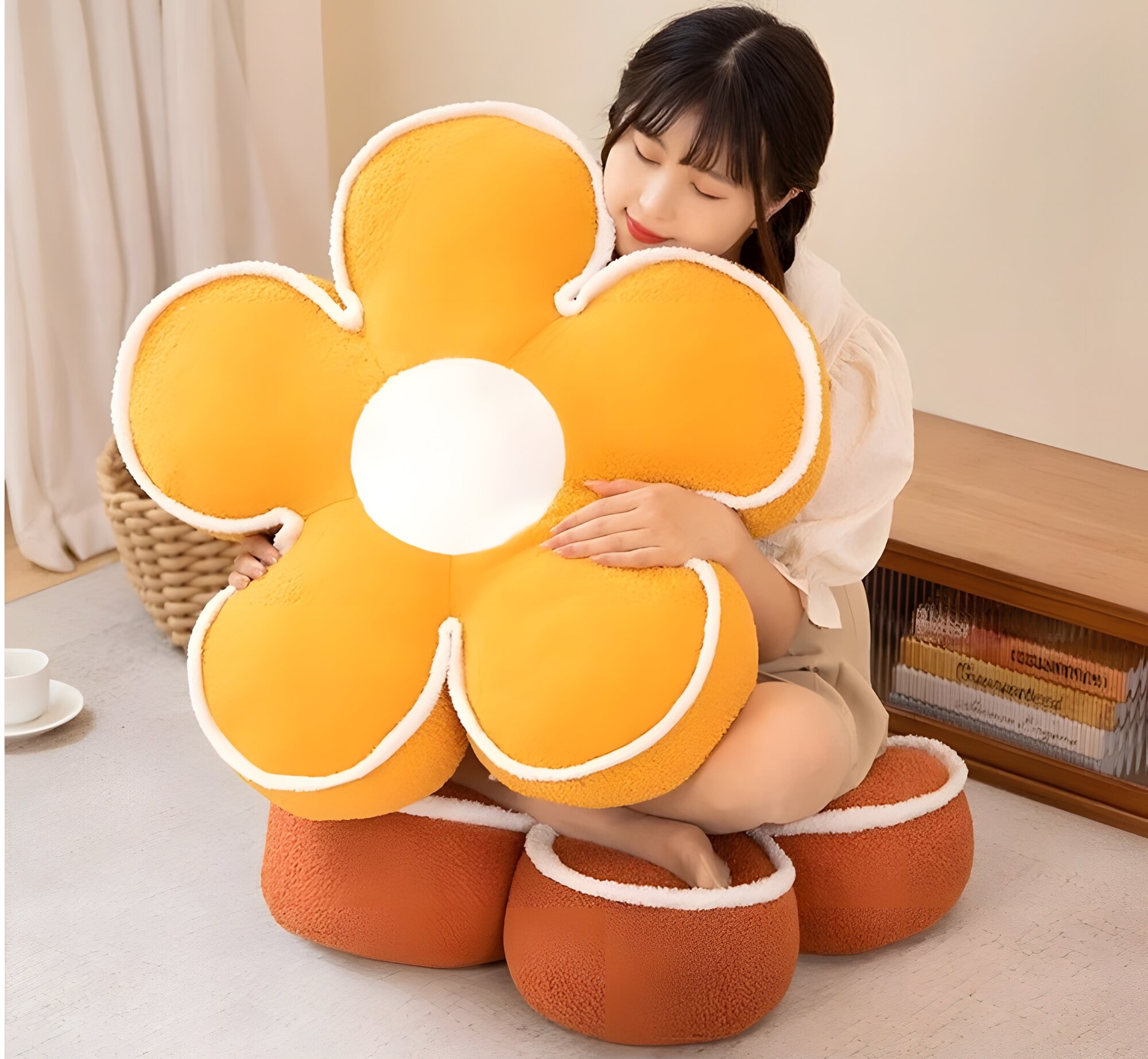Подушка плюшевая на стул декоративная "Милый цветок", 60см, цвет желтый