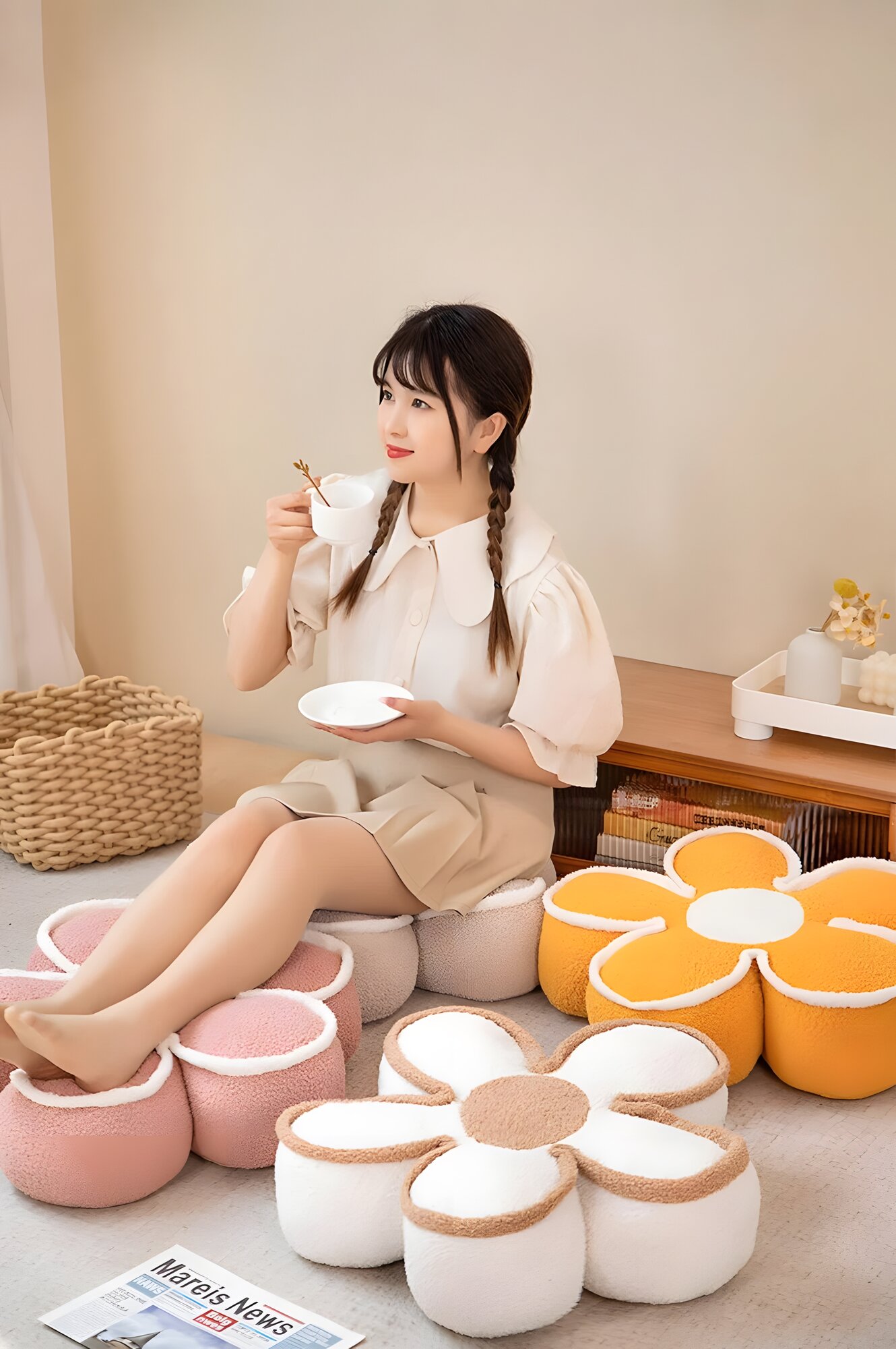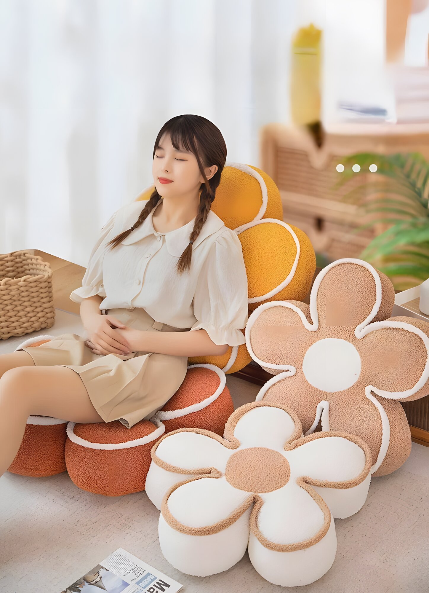 Подушка плюшевая на стул декоративная "Милый цветок", 60см, цвет молочный