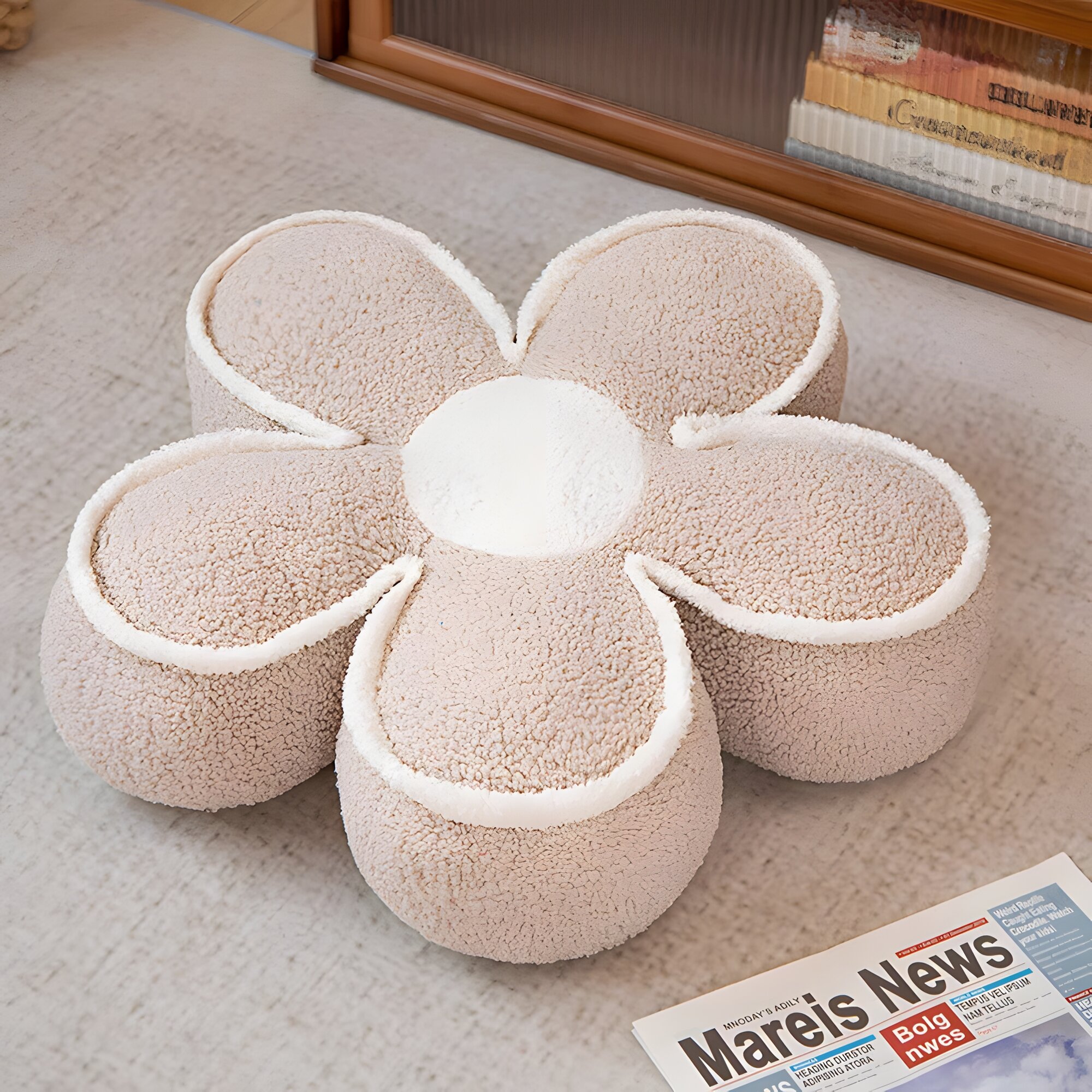 Купить Подушка плюшевая на стул декоративная "Милый цветок", 60 см, цвет бежевый