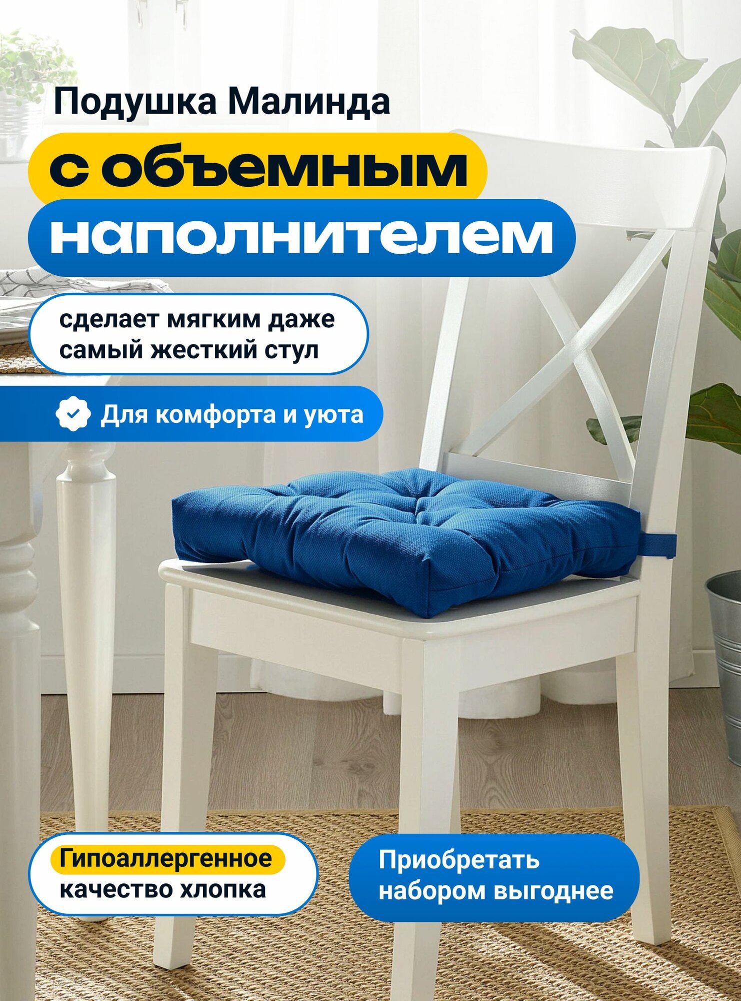 Подушки на стул IKEA Мали́нда, 40x38 см, рогожка, пенополиуретан