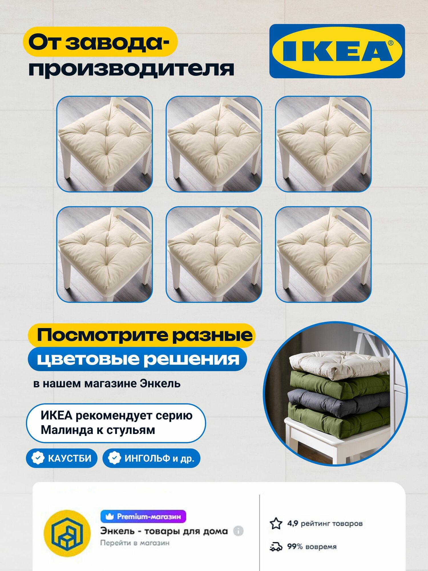Подушка на стул икеа малинда, 40 x 38 см, 4 шт, светло-бежевый