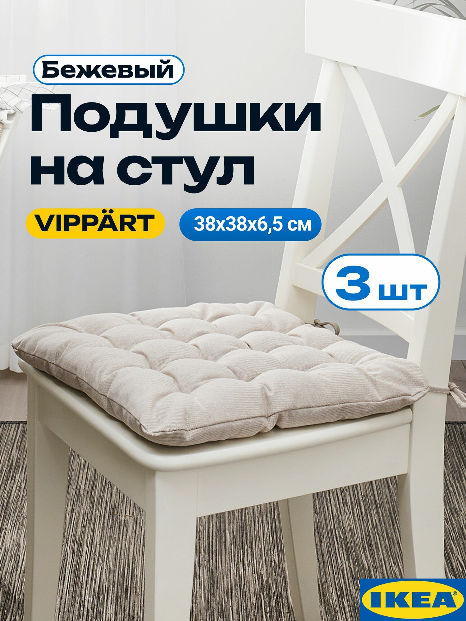 СохранитьПодушки на стул икеа Виппэрт, 3 шт, бежевый. Подушка для стула, с завязками, 38x38x6,5 см VIPPART IKEA интересное: