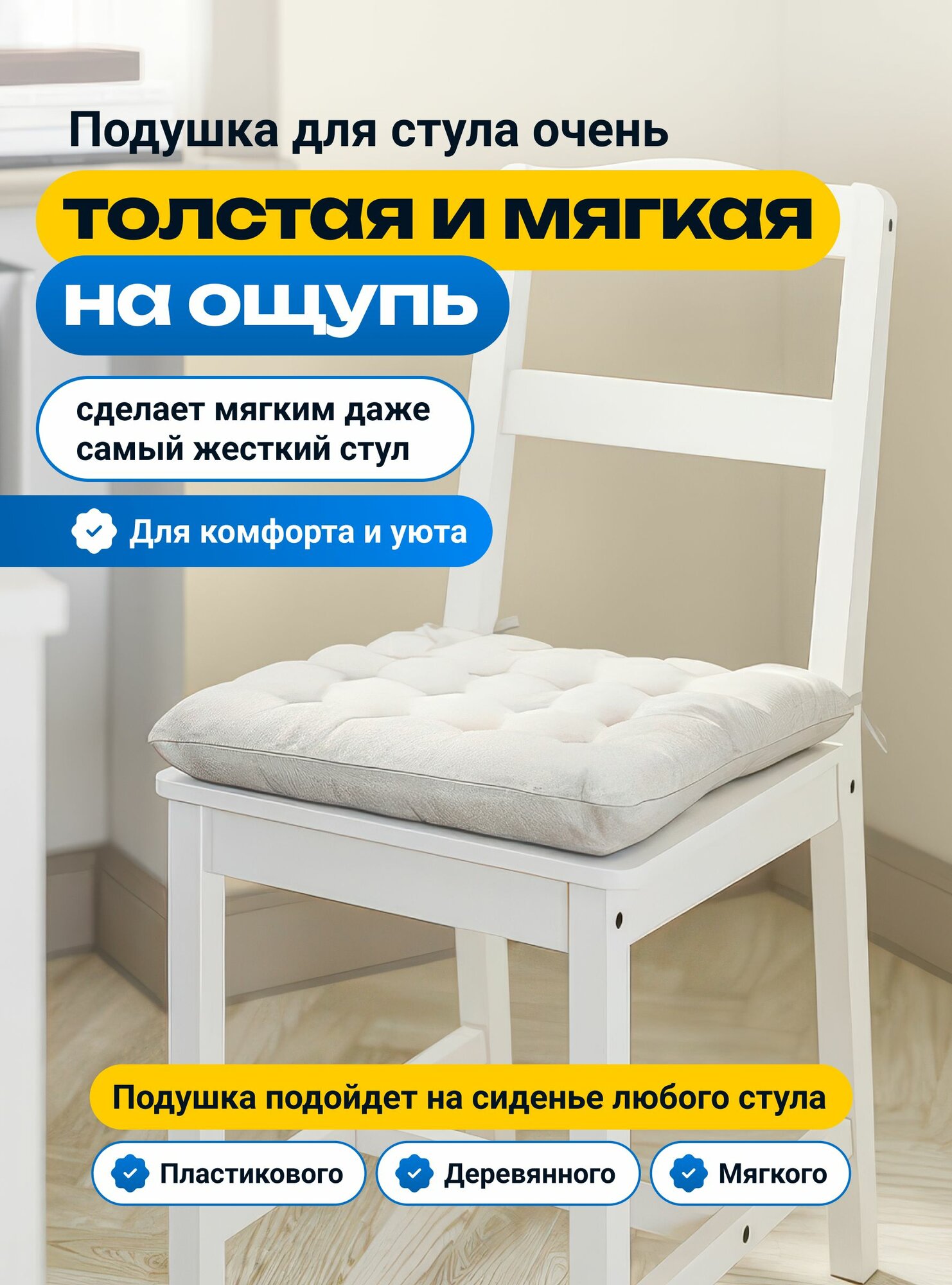 Подушки на стулья Юстина икеа. С завязками на липучках. Justina IKEA. Натуральный цвет, 2 шт.