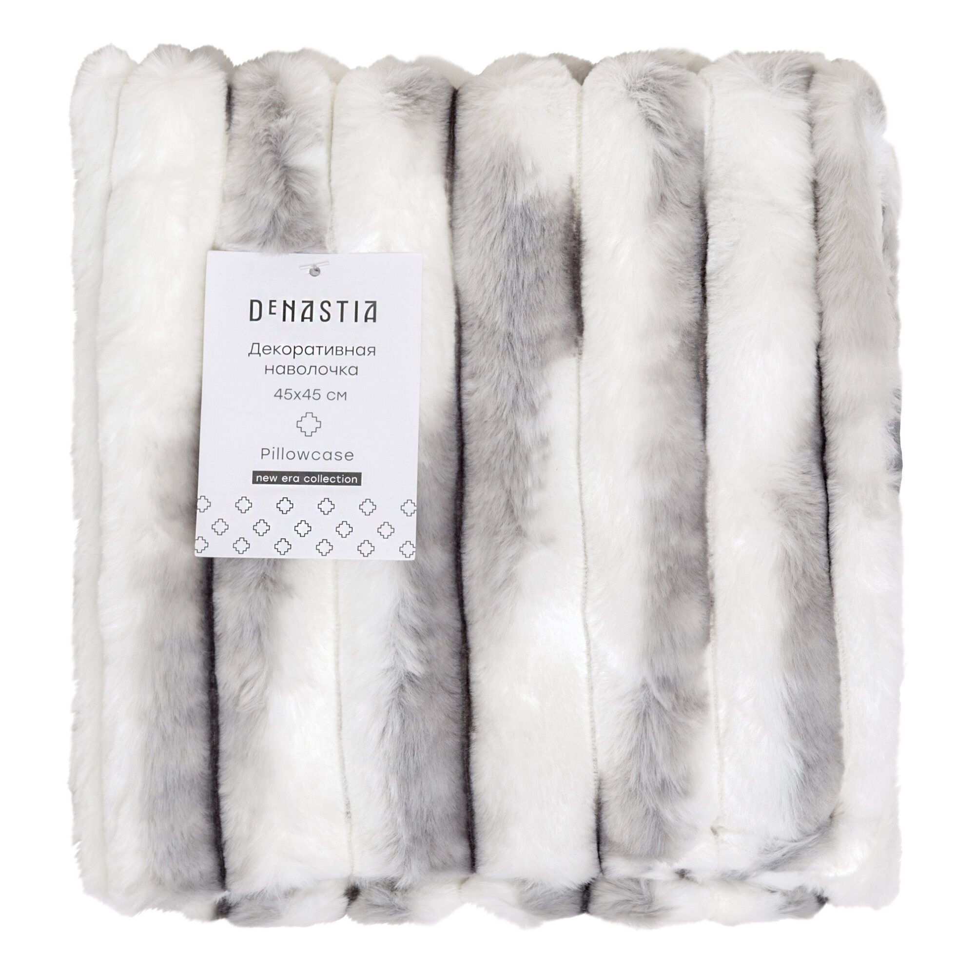 Наволочка декоративная DeNASTIA, "Кролик с шерпой", искусственный мех, 45x45см, цвет серый/белый интересное: