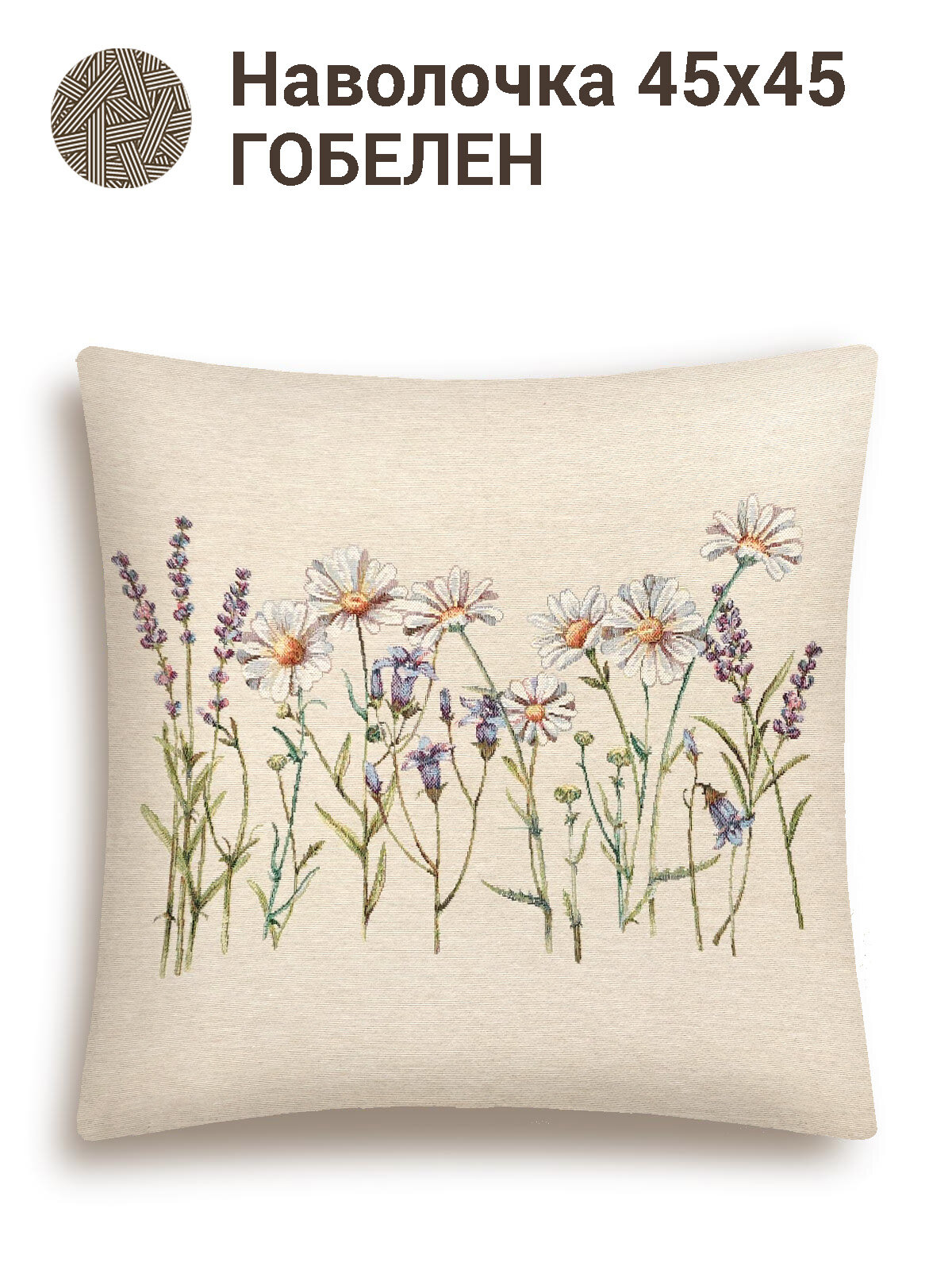 Купить Наволочка гобелен Le Gobelin Ромашки меланж Гладкий фон 45х45 см