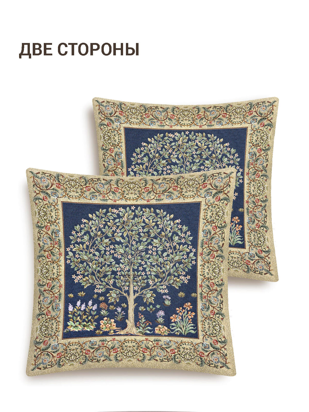 СохранитьНаволочка декоративная Le Gobelin Древо кобальт бордюр беж 45х45 см двусторонняя интересное: